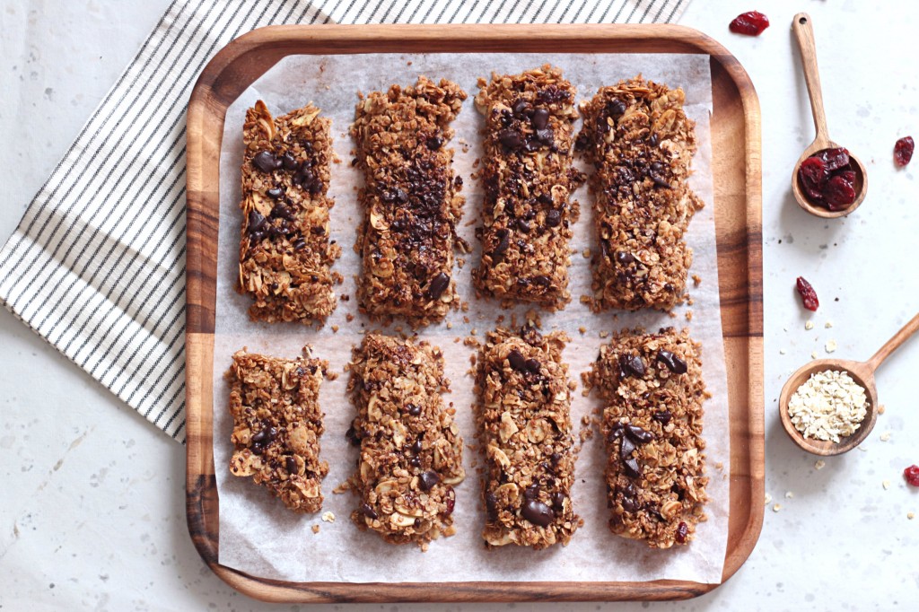 - Barres de céréales maison : Amandes effilées – Cranberries – Chocolat noir (sans sucre)