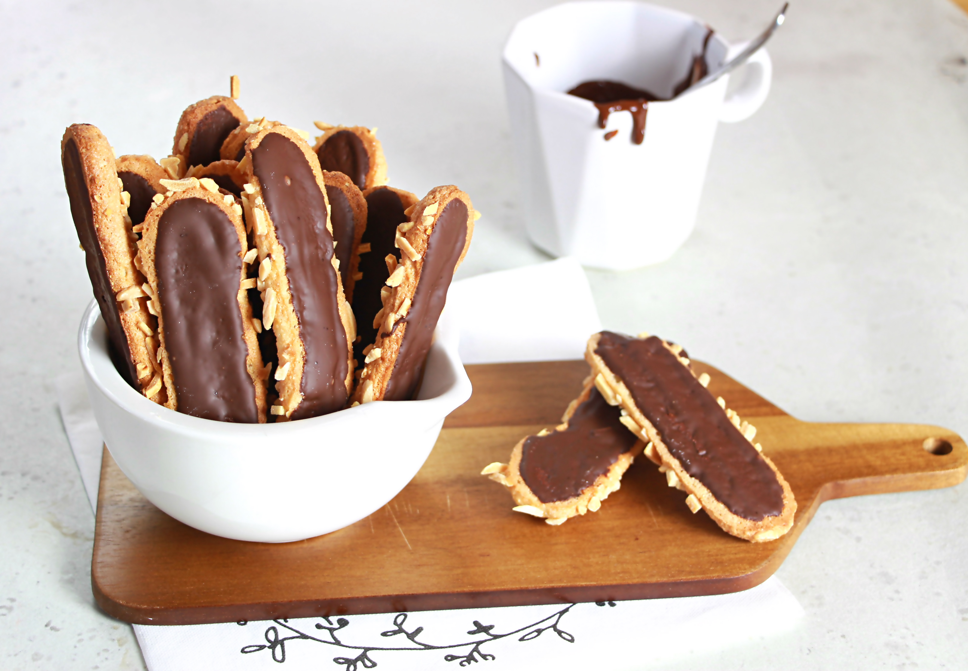 Comment vous dire ?! Effectivement c’est une tuerie ces petits bâtons là ! Miam miam =P Le biscuit en lui-même me fait penser à des macarons (surement la poudre d’amande qui fait ça), donc j’adore !