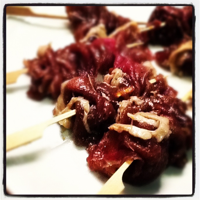 Servez les brochettes immédiatement parsemées de ciboulette, cacahouètes voir même d’oignons frits. J’aime bien ajouter d’autres herbes fraiches comme de la coriandre, des feuilles de shiso ou de menthe et le tout acompagné, bien sûr, d’un bol de riz blanc.