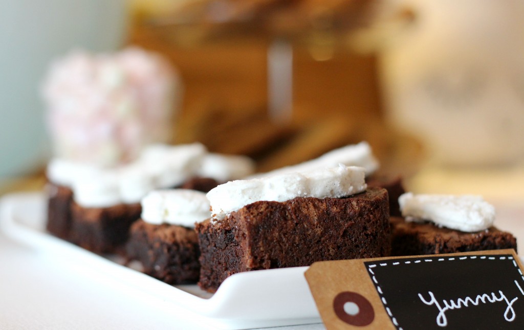 Laisser refroidir et démouler le brownie. Placer une dizaine de minutes au congélateur afin de le découper facilement en rectangles pour la présentation.