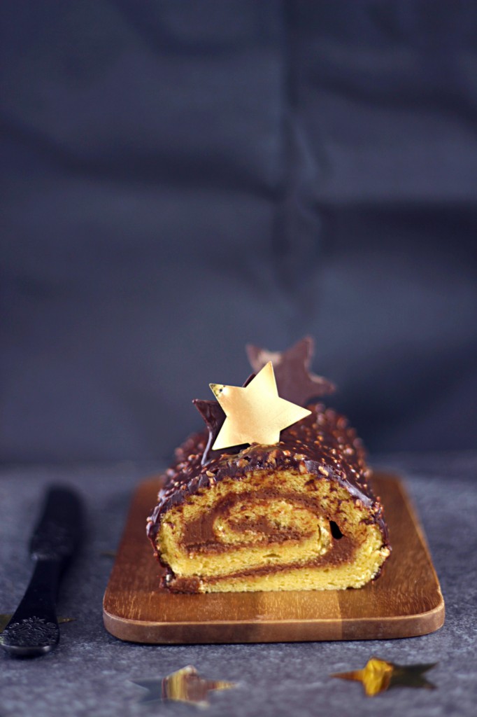 La semaine dernière je vous ai présenté une bûche façon tiramisu aux marrons (que j’ai personnellement adoré), aujourd’hui c’est une bûche un tout petit peu plus traditionnel puisqu’il s’agit d’un véritable biscuit roulé! Comme ça vous aurez le choix!