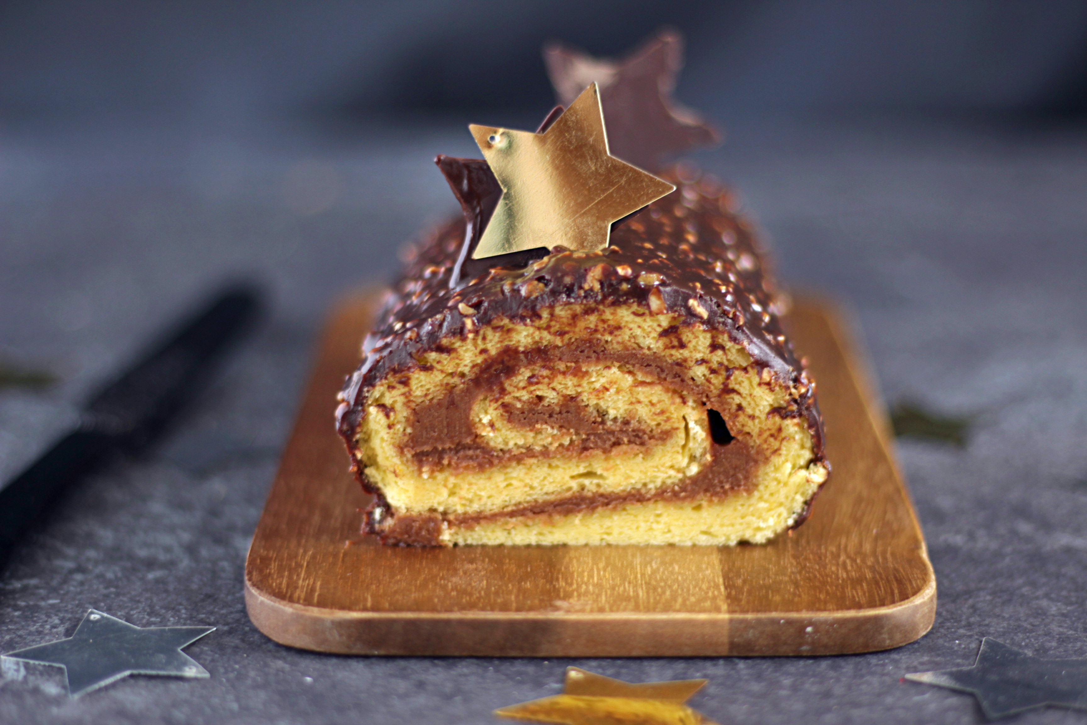 Bûche Mogador de Pierre Hermé glacé façon rocher (chocolat au lait et passion)
