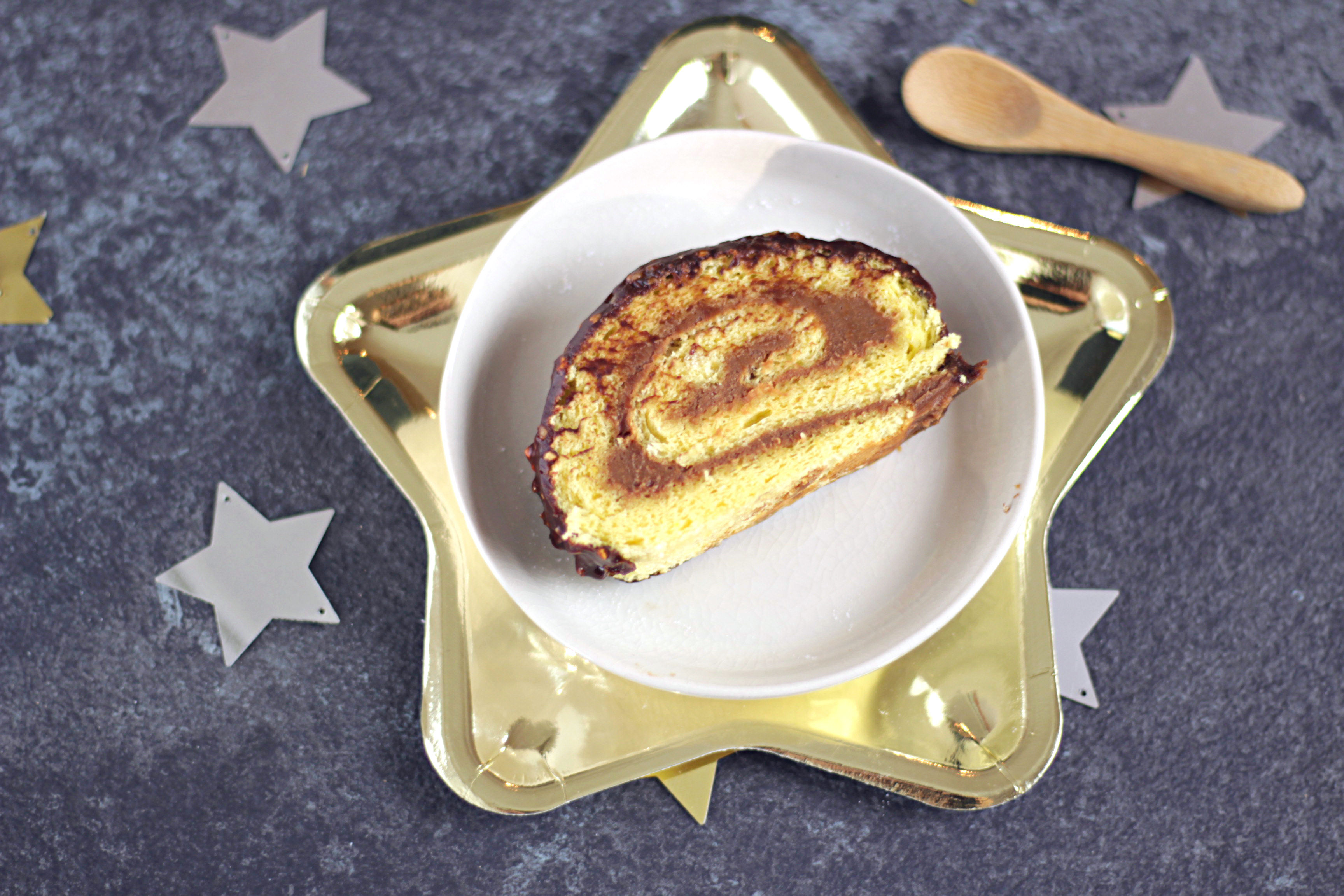 Bûche Mogador de Pierre Hermé glacé façon rocher (chocolat au lait et passion)