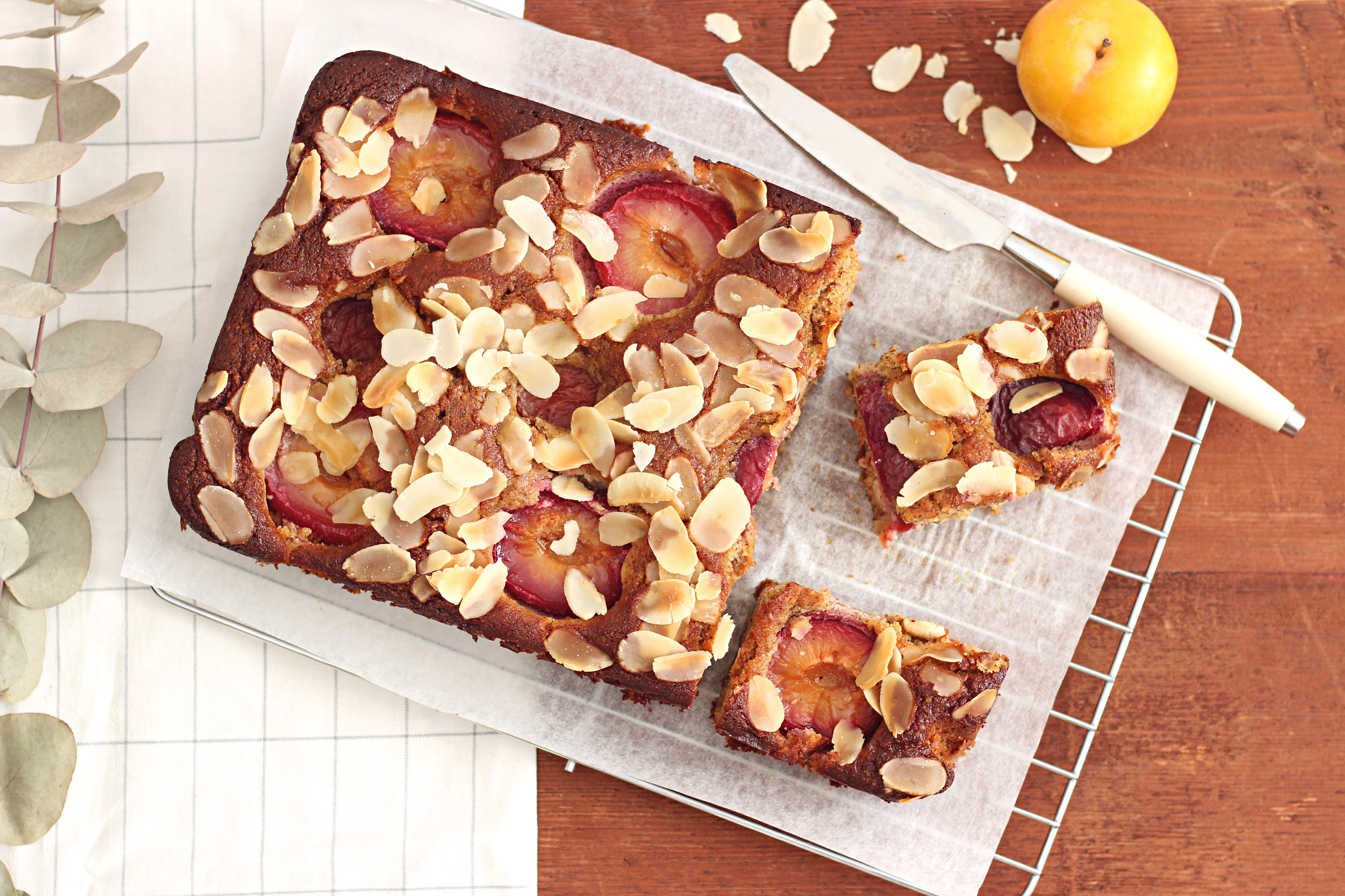 Cake moelleux aux prunes, noisettes et amandes {Sans gluten – Sans sucre – Sans beurre – à IG Bas}