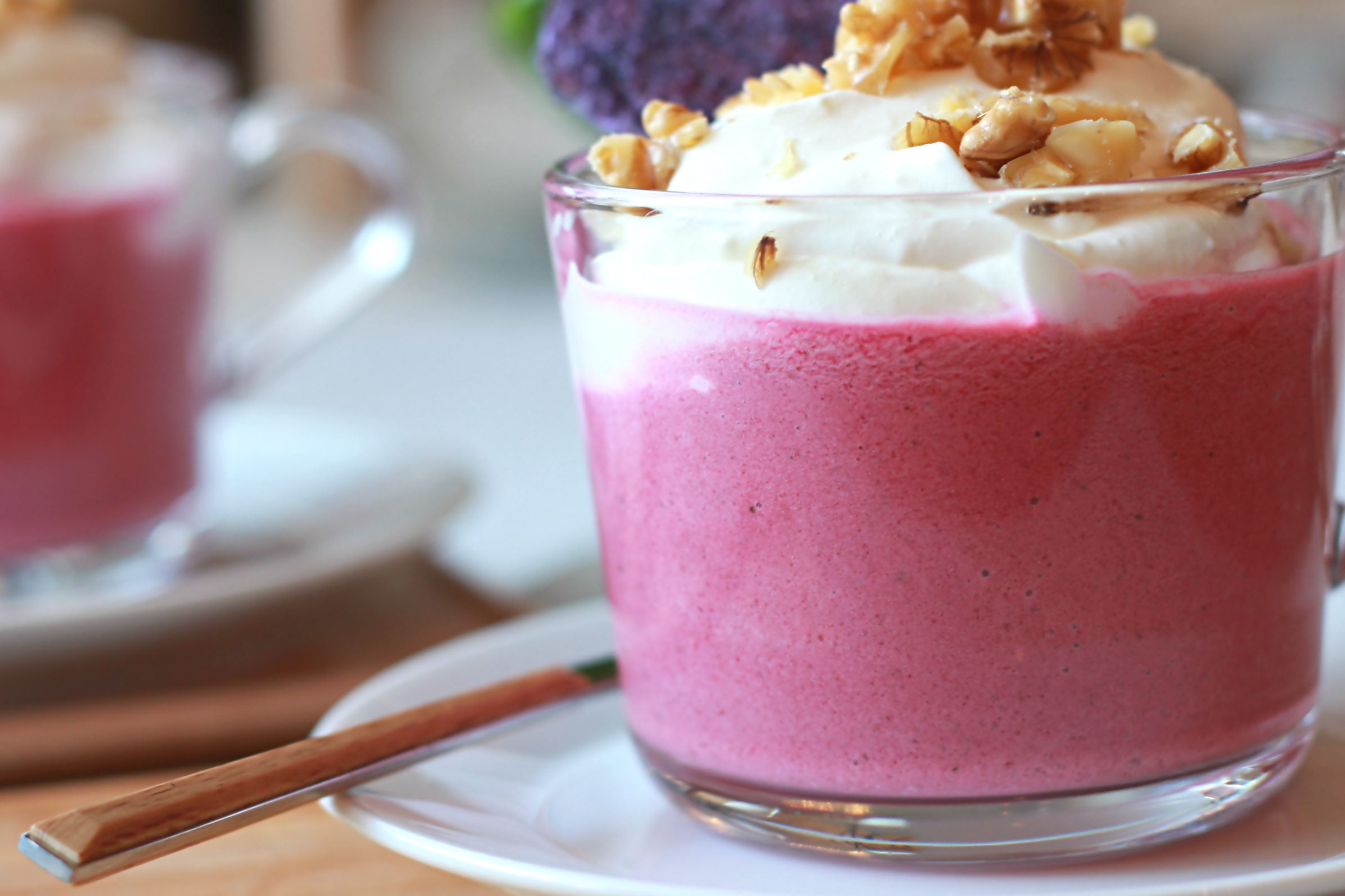 ← Cappuccino de betteraves, crème fouettée à la feta et noix