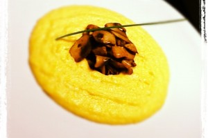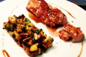 Tendrons de veau, poêlée de pommes de terre et cèpes, jus de veau à la grenade