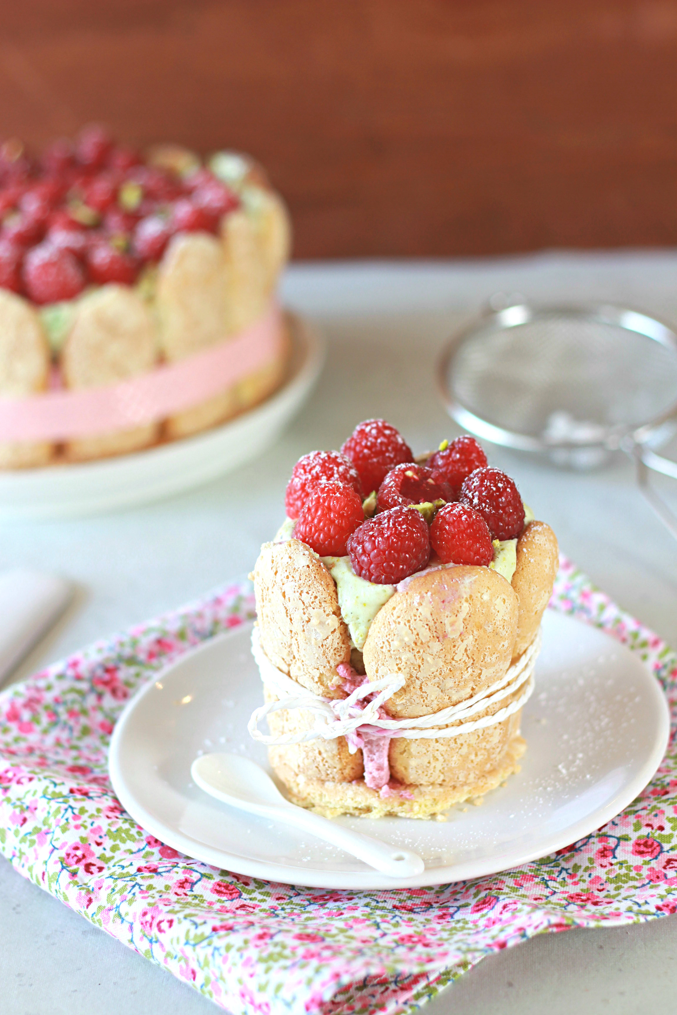 ← Charlotte à la mousse de framboises et chantilly à la pistache