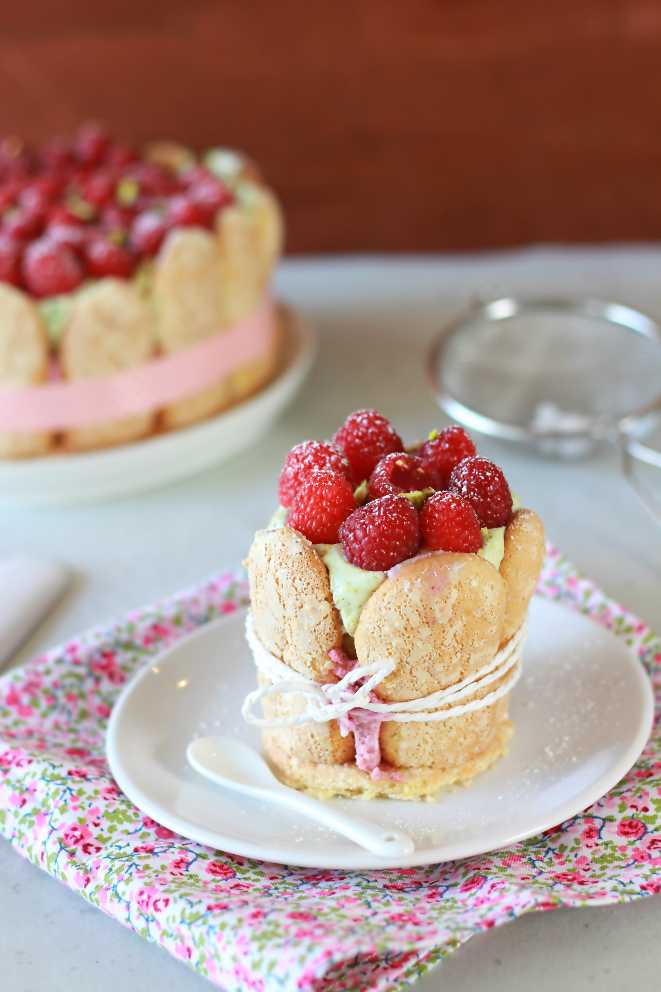 ← Charlotte à la mousse de framboises et chantilly à la pistache