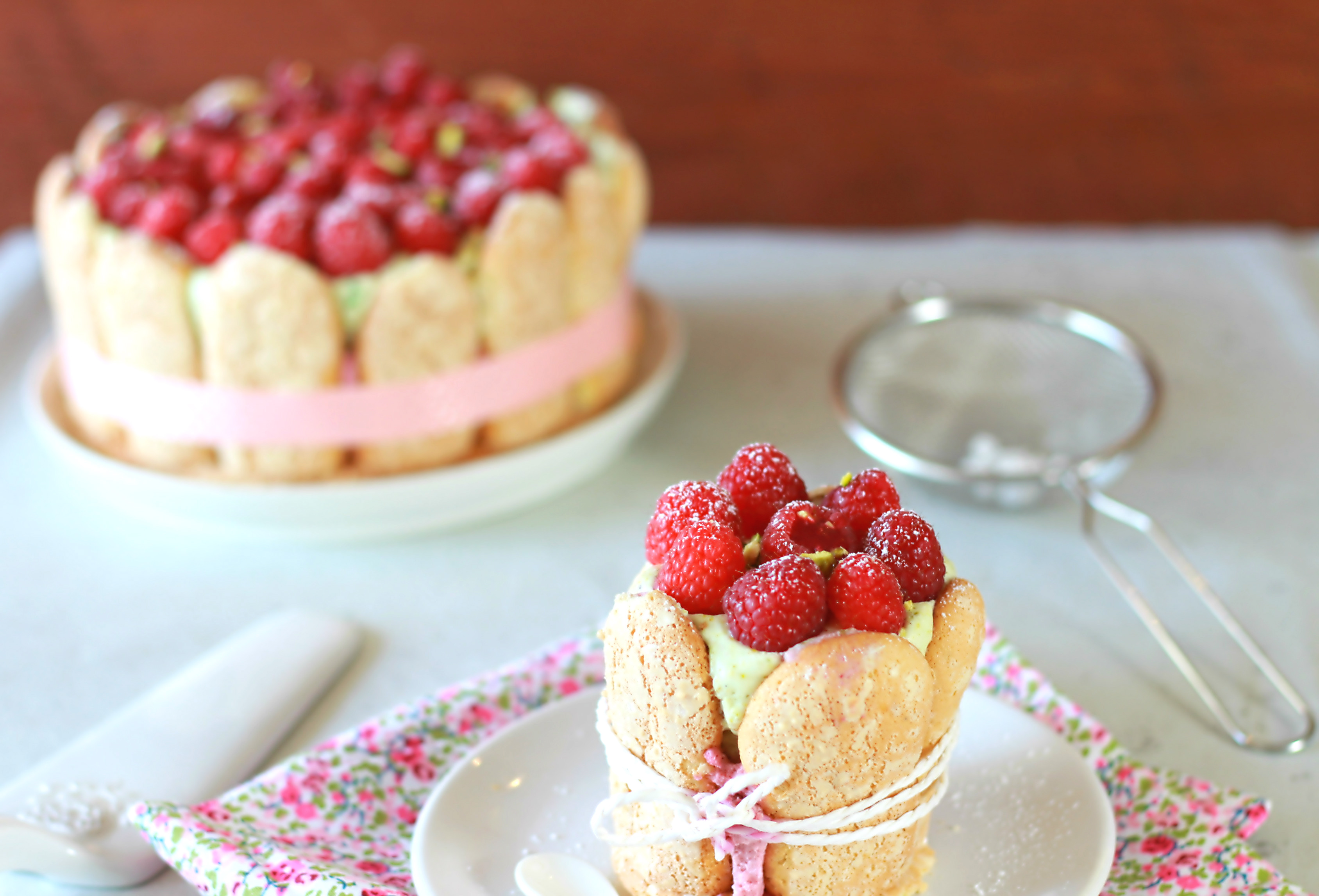 ← Charlotte à la mousse de framboises et chantilly à la pistache