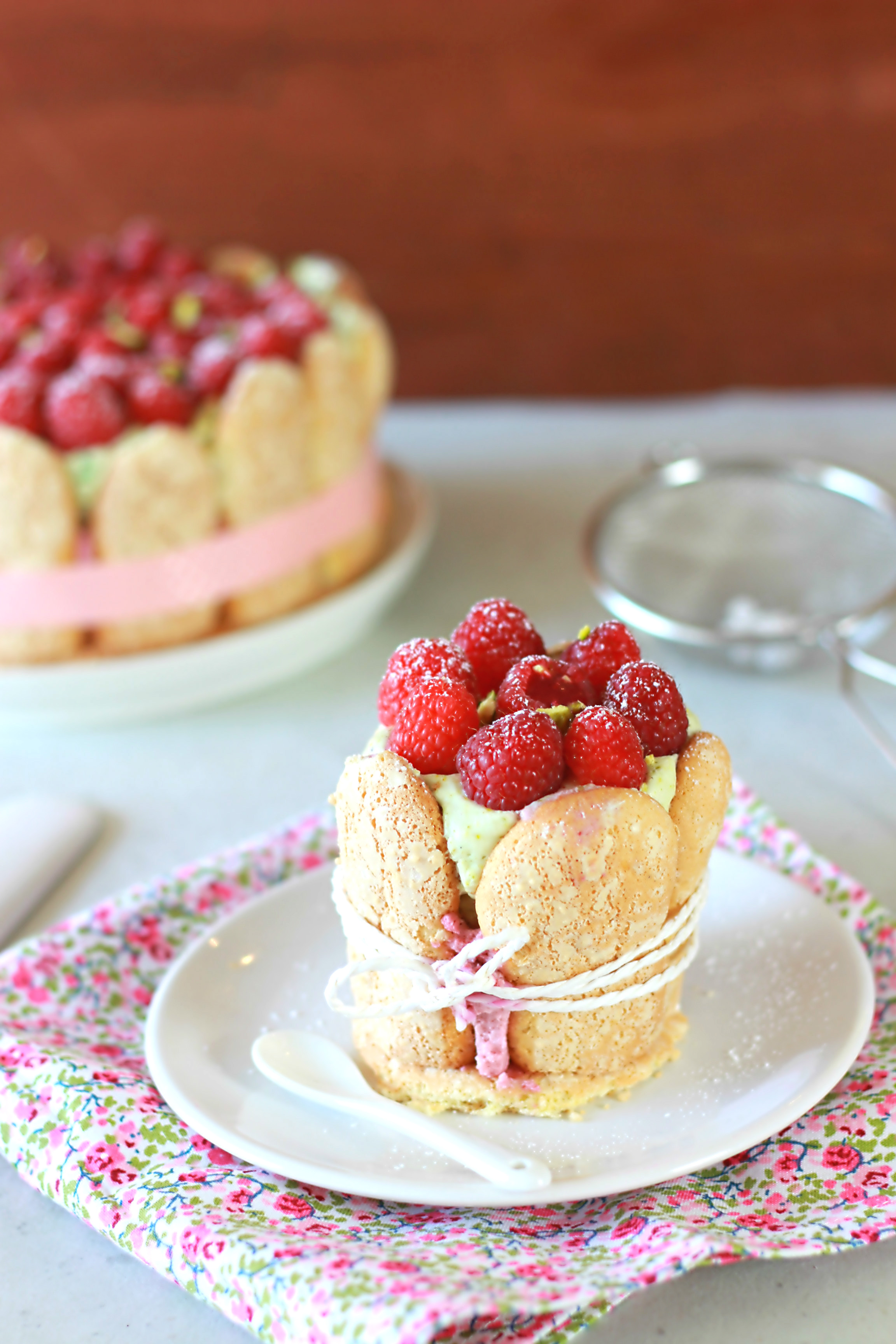 ← Charlotte à la mousse de framboises et chantilly à la pistache