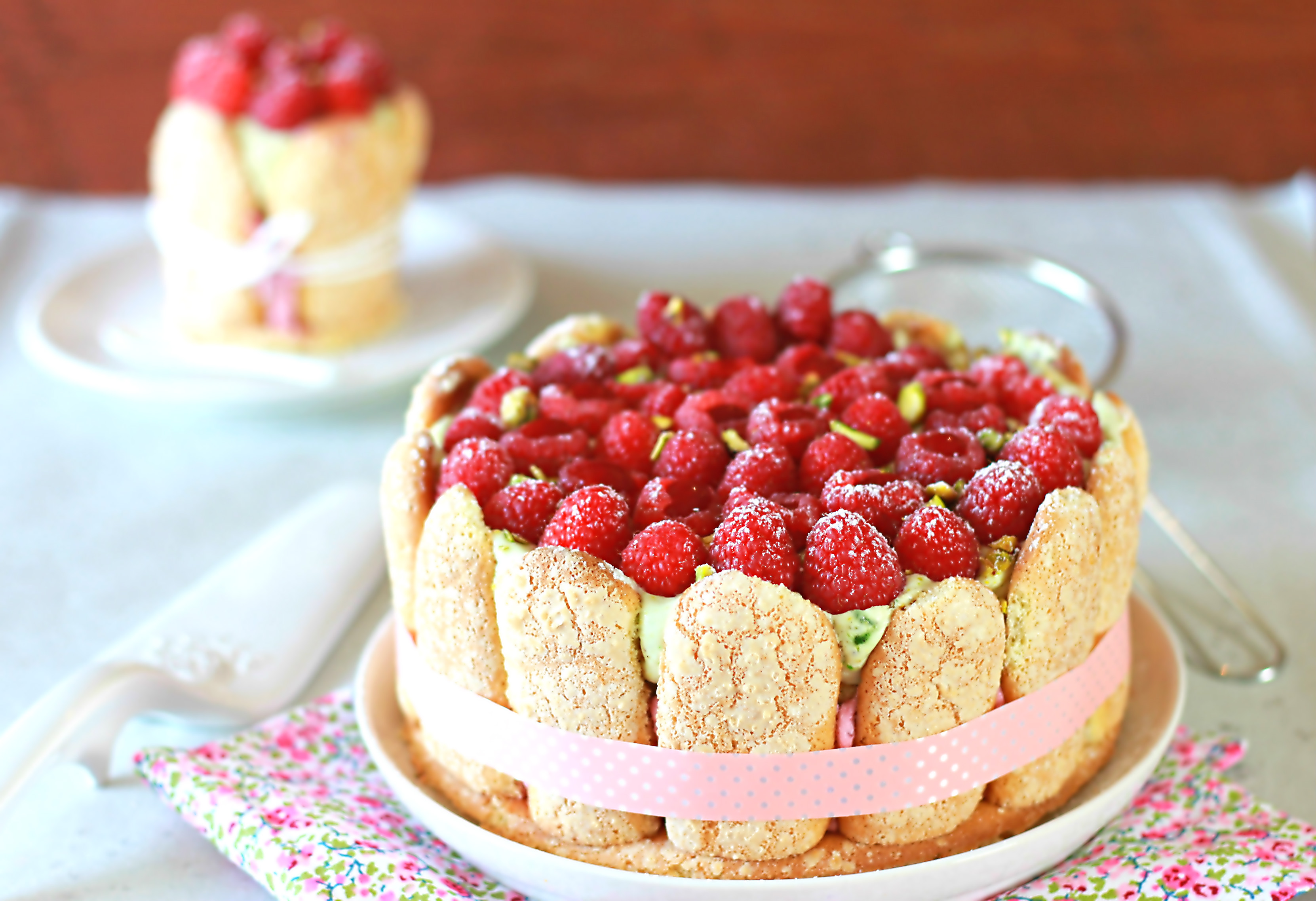 ← Charlotte à la mousse de framboises et chantilly à la pistache