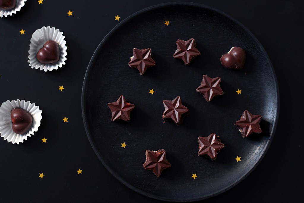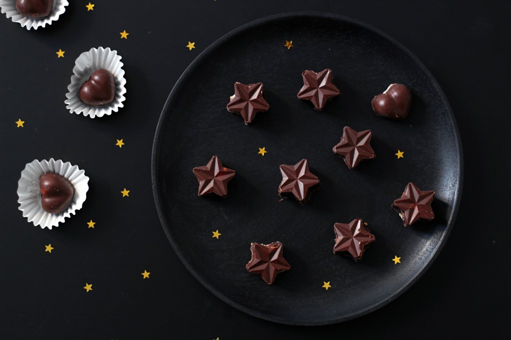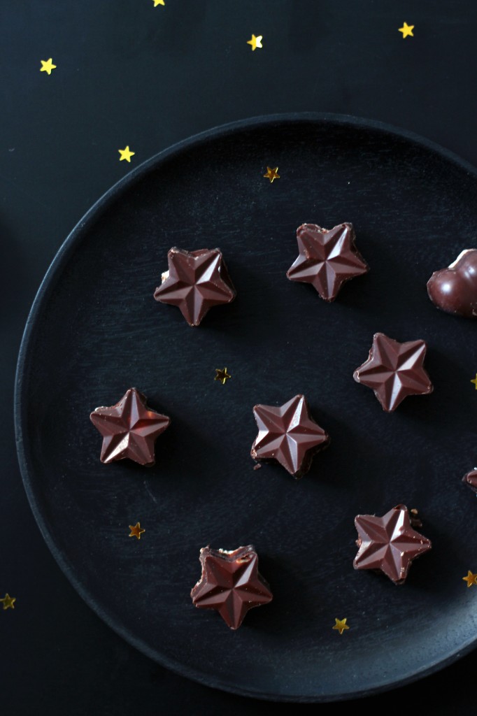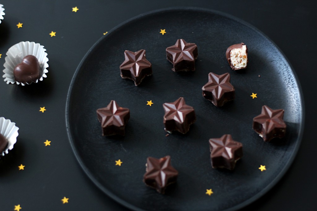 Je vous conseille également d’avoir des moules spécifiquement prévus pour réaliser des chocolats maison (l’année dernière j’avais essayé de couler du chocolat dans des moules à glaçons IKEA, ça avait été un vrai désastre!) ainsi qu’un pinceau à pâtisserie. Ici, j’ai utilisé un moule en forme d’étoiles en silicone de la marque Sostrene Grene. Il était très facile d’utilisation et à un prix imbattable!