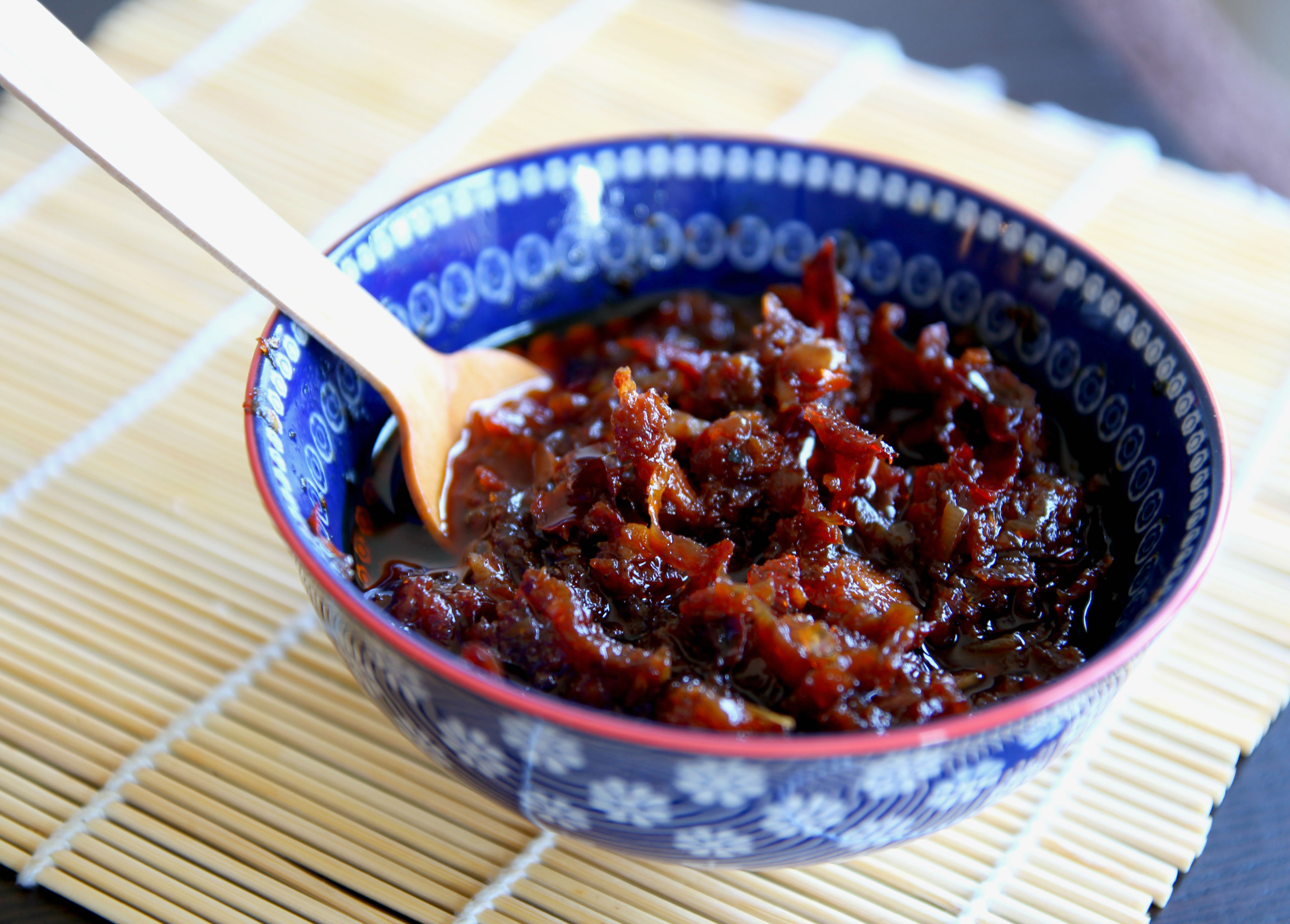 Aujourd’hui on part en Thaïlande avec une recette de David Thompson tirée de son livre « Thai food ». On cuisine un condiment de base dont vous ne pourrez plus vous passer. La raison? La complexité de son goût avec son côté sucré, salé, acide et bien sûr piquant. Comme je le répête souvent, l’équilibre est primordial dans cette recette. J’ai essayé de transcrire au mieux la recette mais vous devrez sûrement faire quelques ajustement en fonction de vos goûts et des ingrédients que vous utiliserez (si vous utilisez des piments plus forts rajoutez un peu de sucre, si votre fish sauce est très salée diminuez un peu la quantité…). En effet, la recette de base fait appel à des cups pour le volume des légumes mais il n’est pas précisé si c’est avant ou après la découpe. Je vous mettrai en bas en annexe la recette originale en anglais pour les puristes. J’ai également divisé la recette originale par 4 environ mais David recommande d’en faire en grande quantité. Ne soyez par effrayé par les ingrédients, on les trouve facilement dans les épiceries asiatiques donc franchissez le pas et testez la recette et vous ne serez pas déçu. Bon appétit.