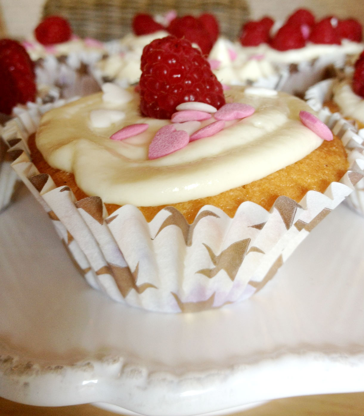Cupcakes aux framboises fraiches et chantilly au chocolat blanc