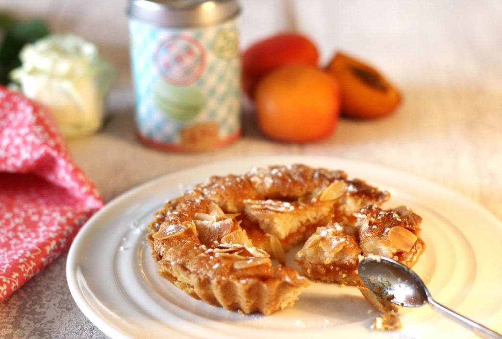- On commence par une tarte assez originale et franchement bonne : une Tarte macaronnée aux abricots