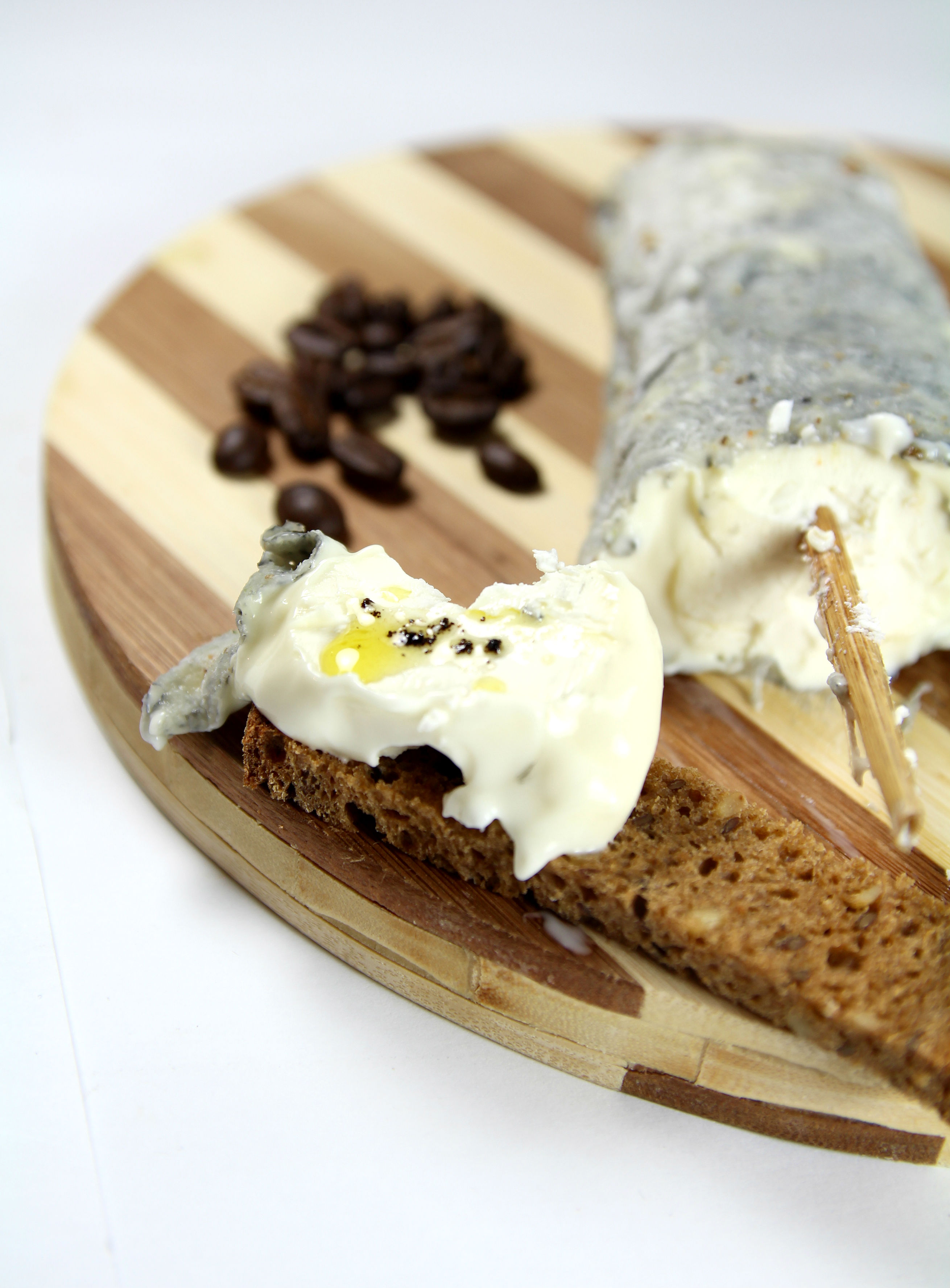 ← Fromage de chèvre frais, huile parfumée au café