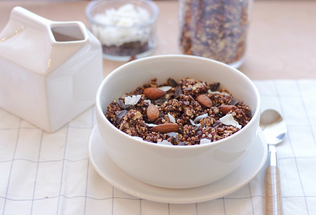 4 Responses to Granola au chocolat, amandes, noix de coco et quinoa soufflé {Sans gluten et à IG bas}
