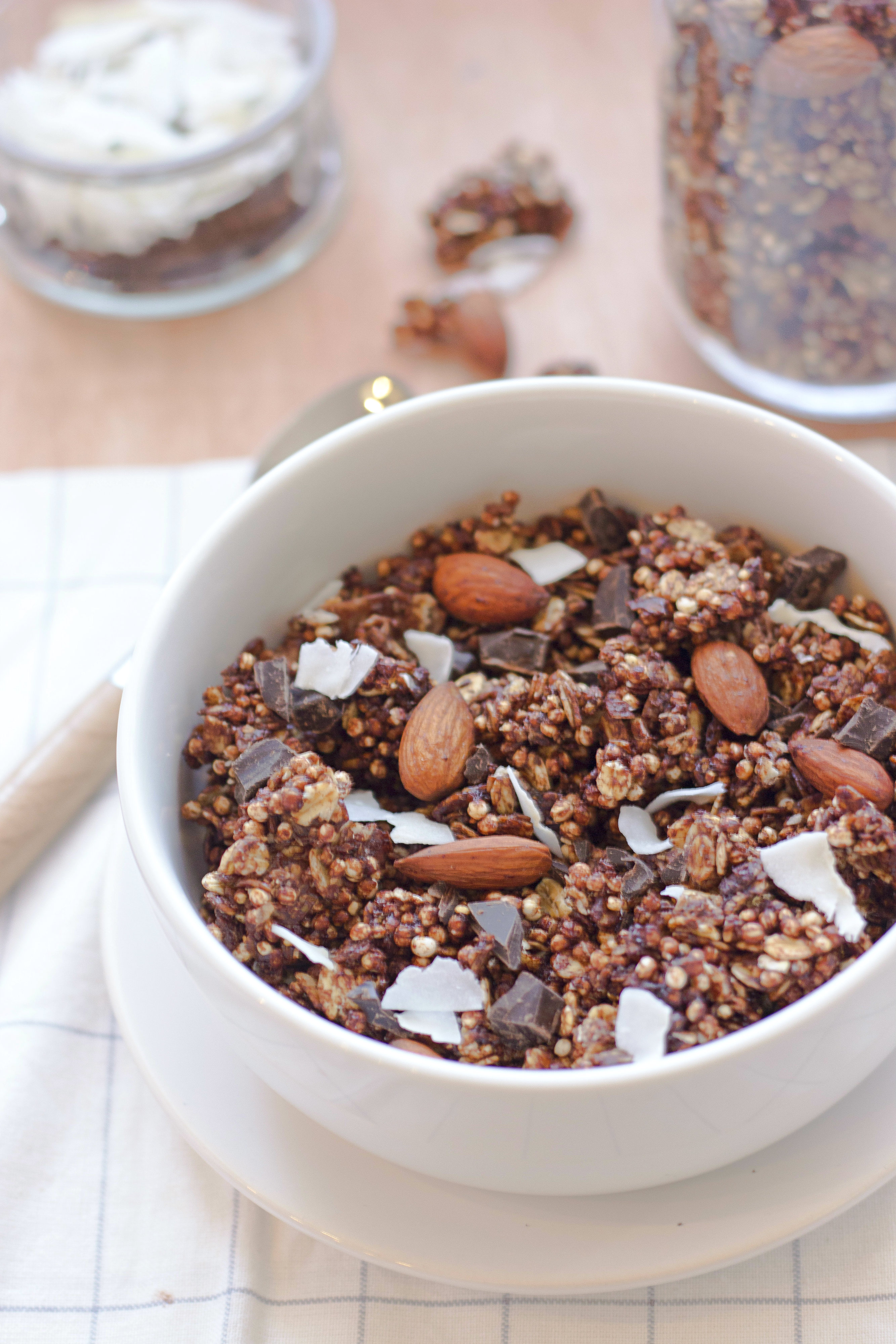 ← Granola au chocolat, amandes, noix de coco et quinoa soufflé {Sans gluten et à IG bas}