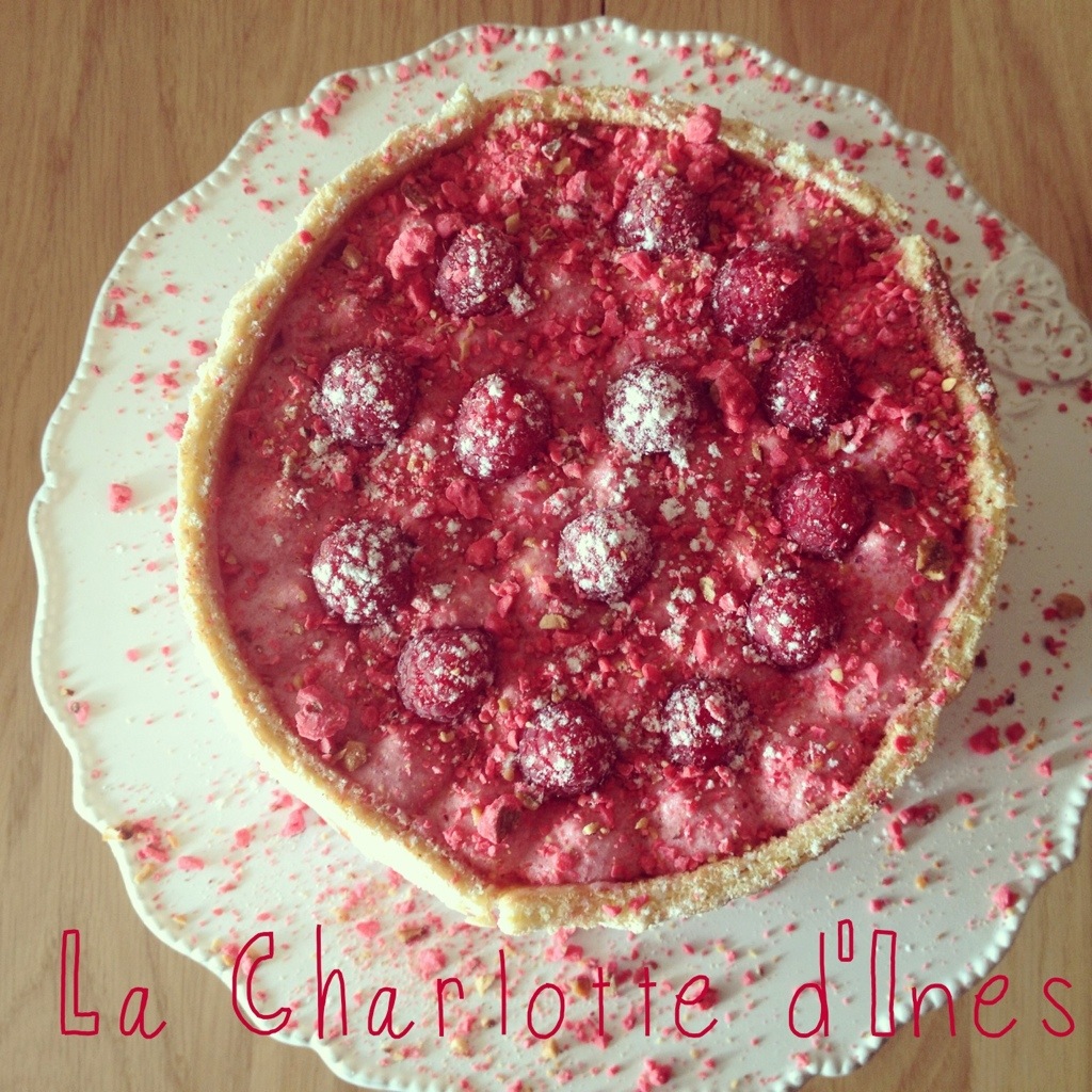 Décorer le dessus avec quelques framboises fraiches et des éclats de pralines roses. Réserver au minimum 4 heures au réfrigérateur et saupoudrer d’un peu de sucre glace au moment de servir.
