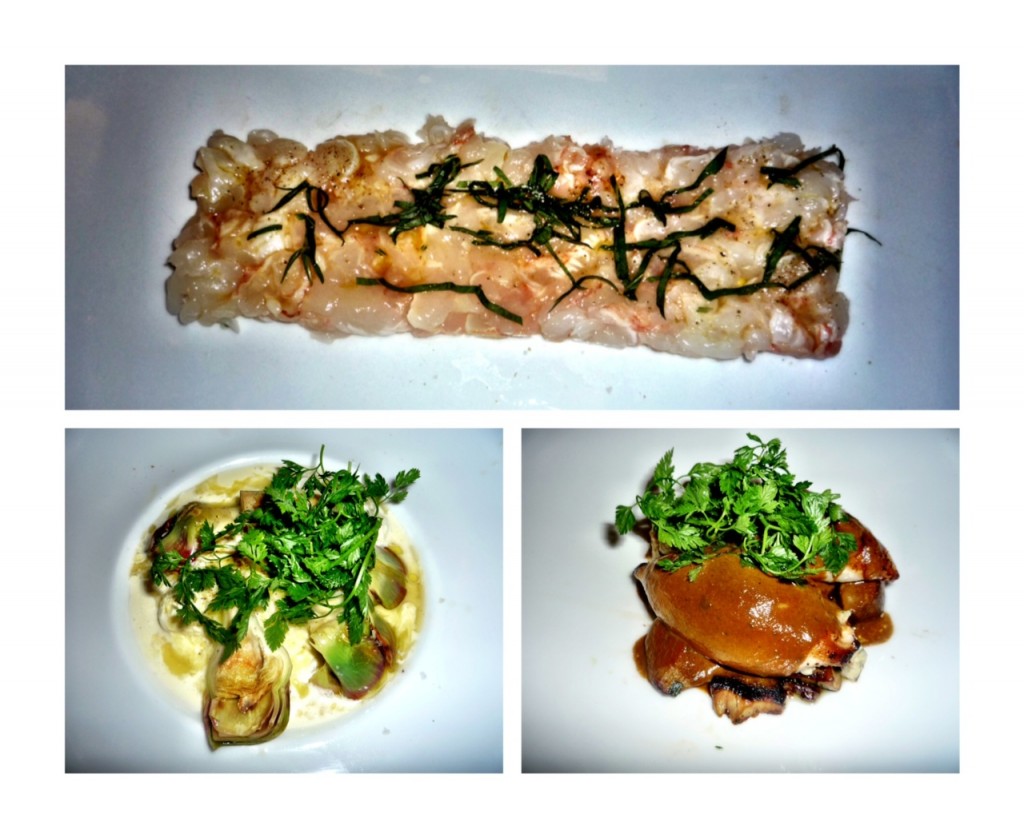 Vous trouverez parmi les photos quelques classiques comme le Lomo de pata negra laqué façon teriyaki, la côte de veau rôtie…J’ai essayé ce restaurant cet été (c’était mon cadeau d’anniversaire !) donc vous ne retrouverez pas tous les plats sur la nouvelles carte car celle-ci évolue au fils des saisons. A noter qu’il y a une belle sélection de vins. Mon coup de cœur fût les calamaretti farcis aux cèpes, jus de crustacé au basilic thaï.