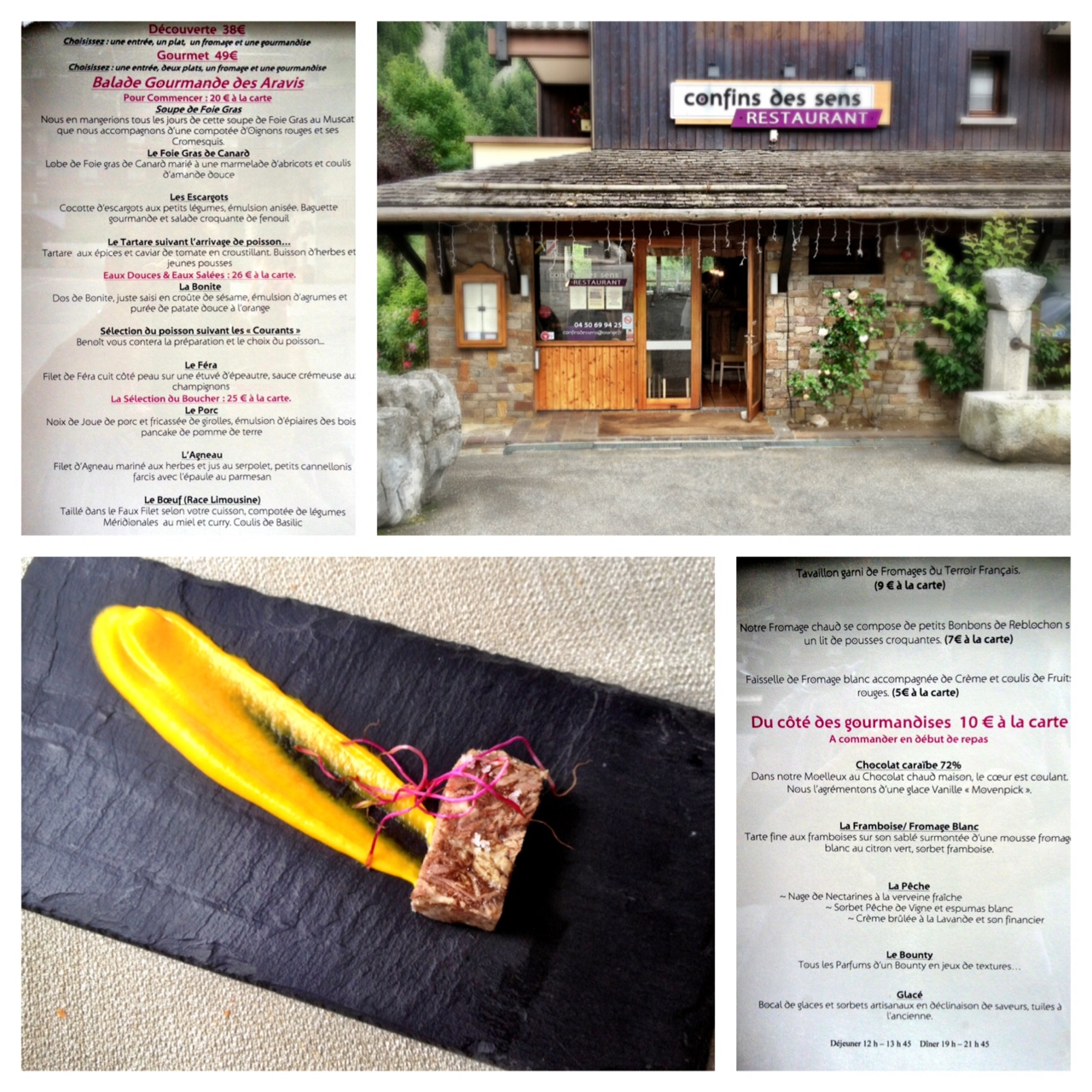 Le confins des sens est Le restaurant gastronomique du Grand Bornand. C’est un peu par hasard que nous y avions atterri pour le déjeuner. Alors qu’ une heure venait de sonner au clocher de l’église du village et après un rapide coup d’œil sur mon smart phone, je fus vite emballé par l’article du critique gastronomique Gilles Pudlowski.