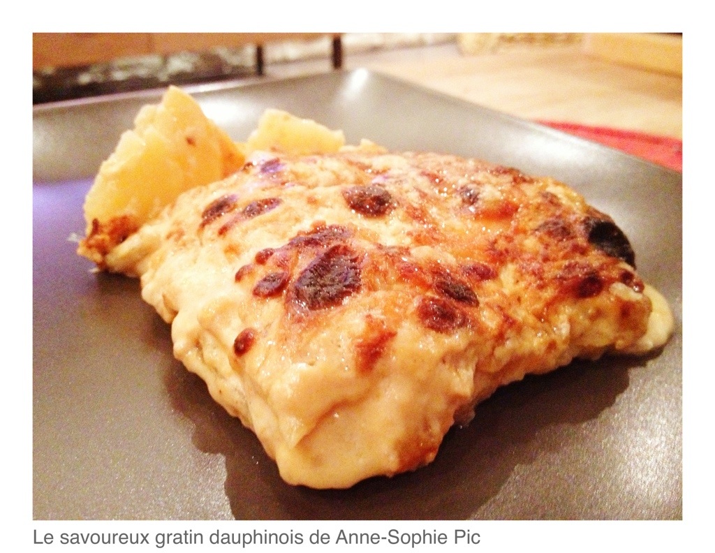 Pour la réalisation du gratin dauphinois j’ai choisi la recette de Anne-Sophie Pic à ceci près que j’y ai ajouté du Comté pour encore plus de gourmandise.