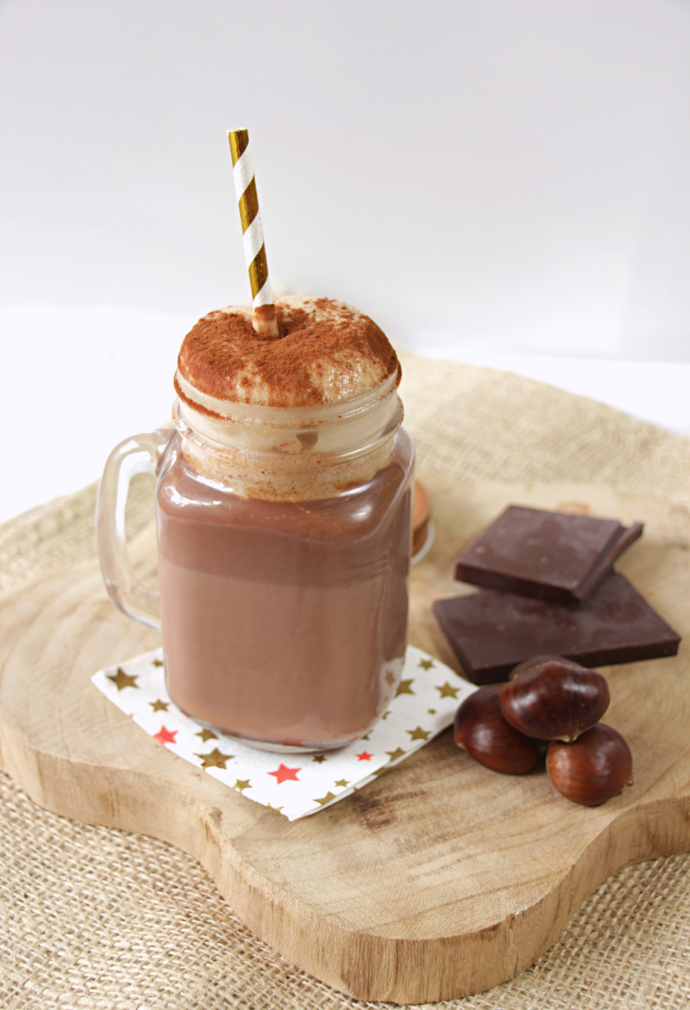 Le vrai chocolat chaud et chantilly aux marrons