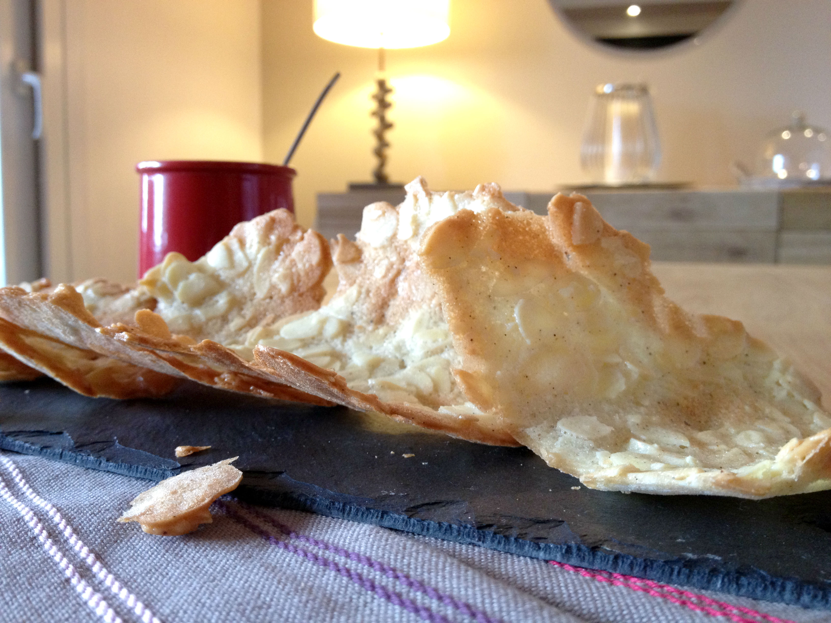 Aujourd’hui je vous propose ni plus ni moins qu’une de mes recettes préférées, celle des tuiles aux amandes. Il faut savoir que depuis que je suis petite, je voue un culte sans faille à ce que l’on appelle « les petits fours », que je préfère largement aux pâtisseries fines. A l’heure du goûter, ma mère me ramenait souvent un petit sachet blanc rempli de mes douceurs préférées, à savoir les sablés au chocolat et surtout les tuiles aux amandes que j’affectionnais par dessus tout.