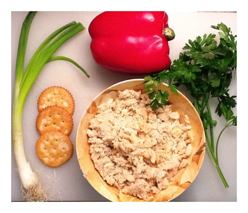 Dans un saladier mettez l’oignon, le poivron et le persil. Ajoutez les crackers émiettés et votre crabe.
