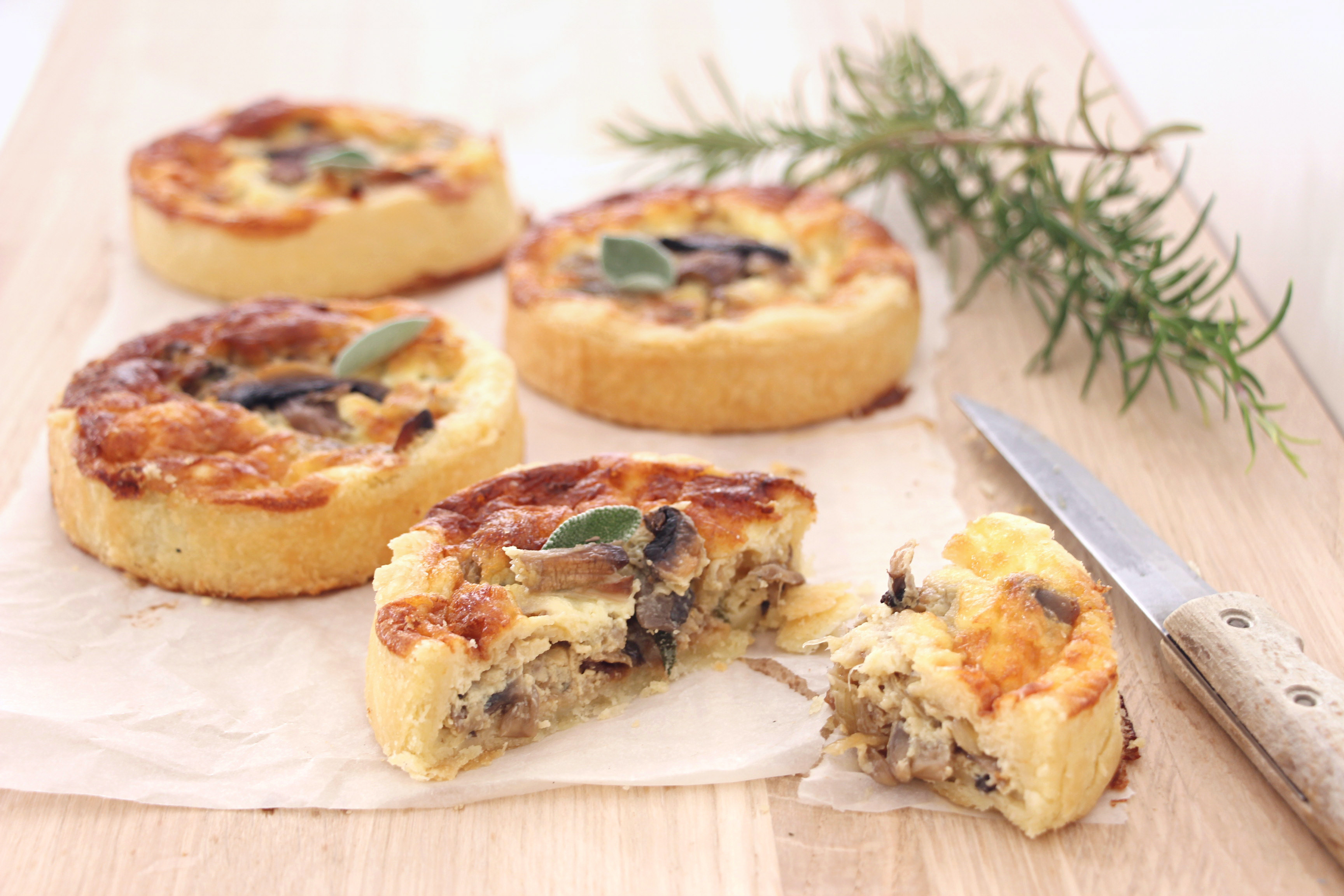 Mini quiches champignons, oignons et sauge