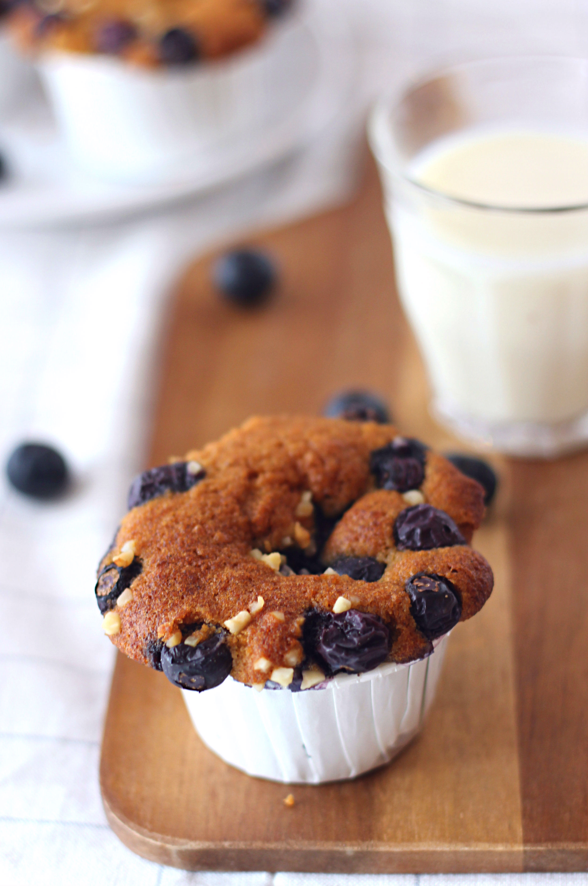 Muffins à l’amande, au son d’avoine et aux myrtilles {à IG bas}