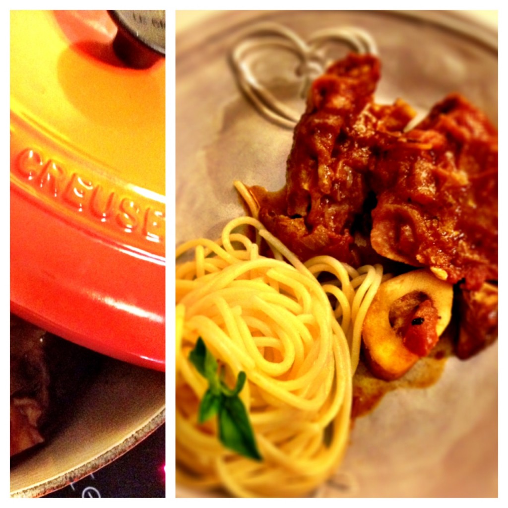 Astuce THCF: S’il vous reste de l’osso bucco, effilochez la viande ou coupez la en petits morceaux dans la sauce et faites revenir des pâtes avec, c’est un régal.
