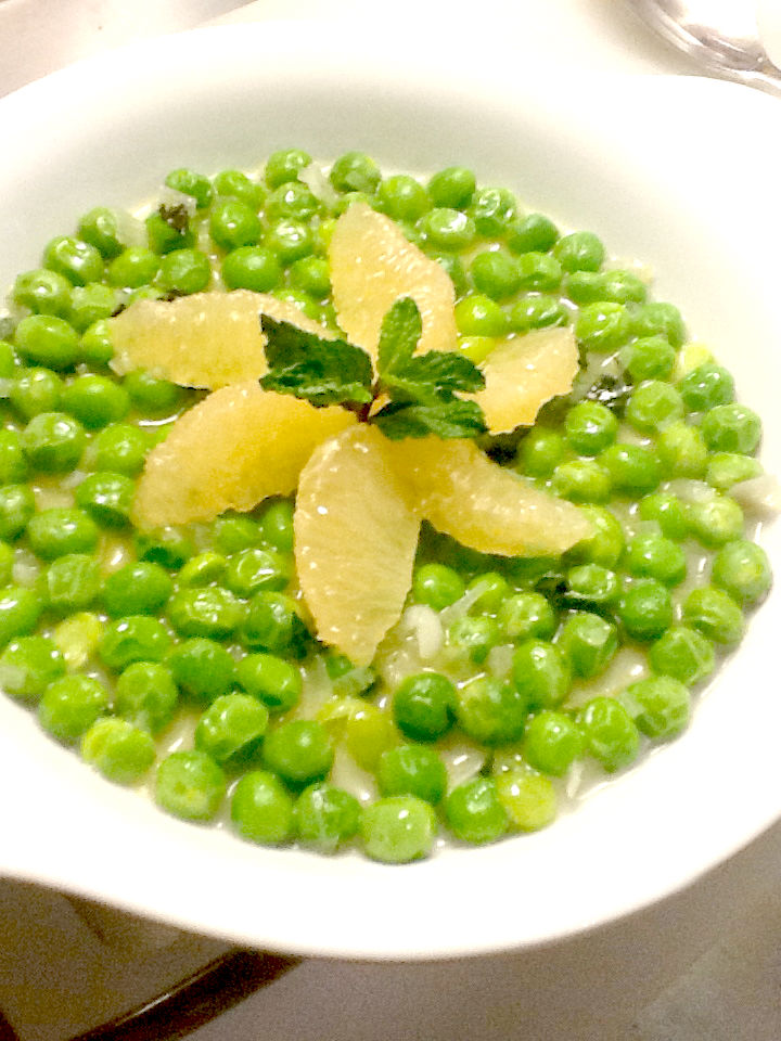 ← Petits pois « caviar vert » et pamplemousse rose à la menthe fraîche (recette d’Alain Passard)