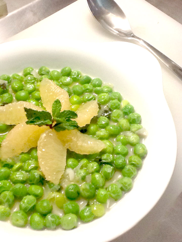 ← Petits pois « caviar vert » et pamplemousse rose à la menthe fraîche (recette d’Alain Passard)