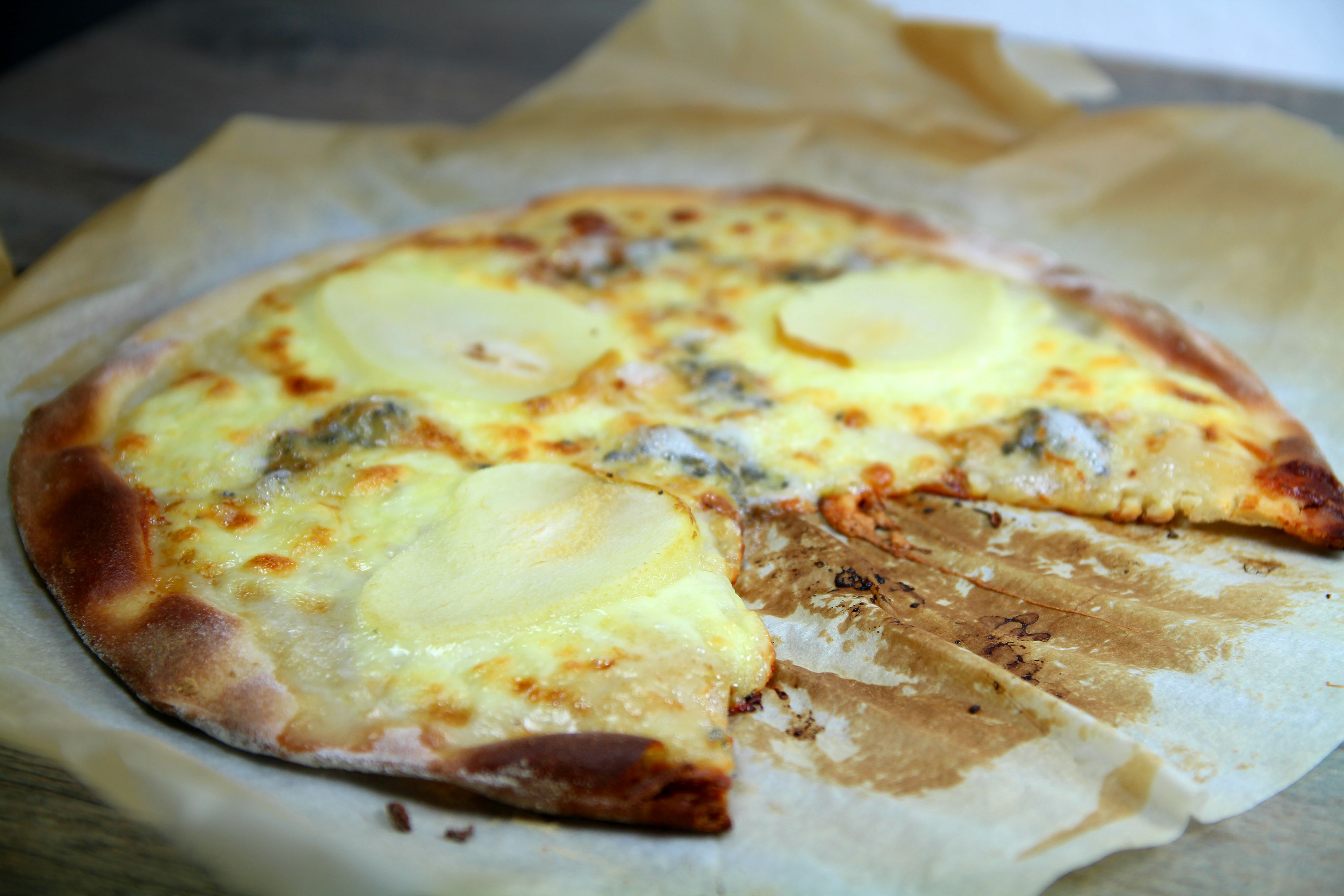 ← Pizza mozzarella, gorgonzola et poire