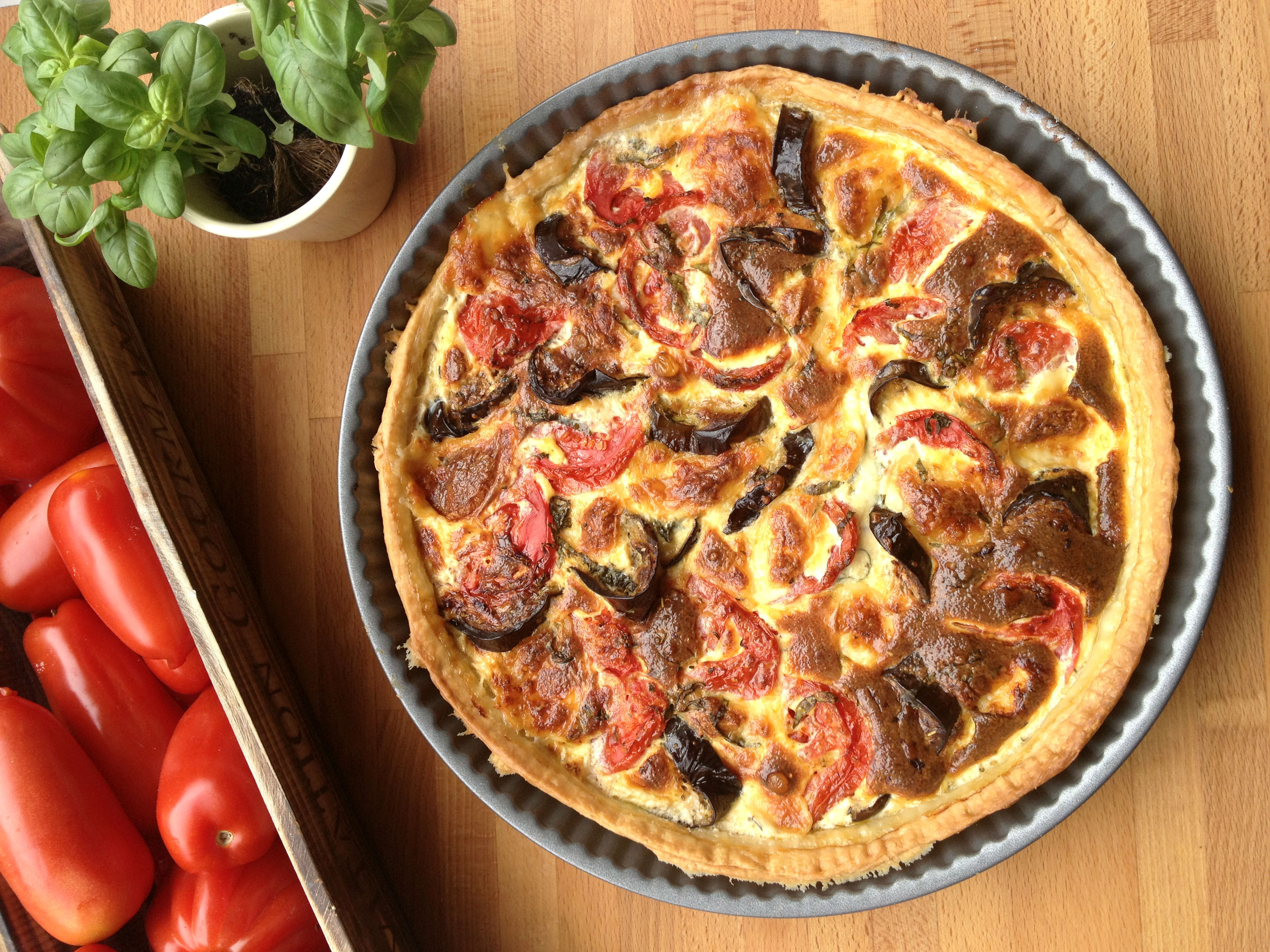Quiche aux aubergines, tomates et mozzarella
