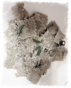 La bourrache est une plante assez connue pour ses petites fleurs bleues qui ont la particularité surprenante d’être iodées. Elle est moins réputée pour ses feuilles duveteuses qui, une fois blanchies, perdent leur saveur d’huitre. C’est pourtant celles-ci qui entrent dans la composition de ces ravioli. Il arrive assez fréquemment que les feuilles soient remplies de terre donc n’hésitez pas à leur administrer plusieurs bains.