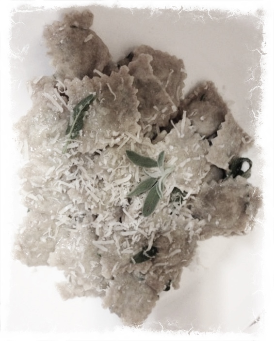 Concernant la farce, lavez abondamment la bourrache et ôtez les côtes. Dans de l’eau salée en ébullition plongez 1 minute la bourrache. Une fois refroidies, pressez fortement vos feuilles de bourrache blanchies, puis hachez les finement avec une demi-lune ou un couteau. Incorporez la ricotta et assaisonnez. Le plus compliqué reste à faire : formez vos ravioli avec une pâte la fine possible, les conserver ensuite au frais.