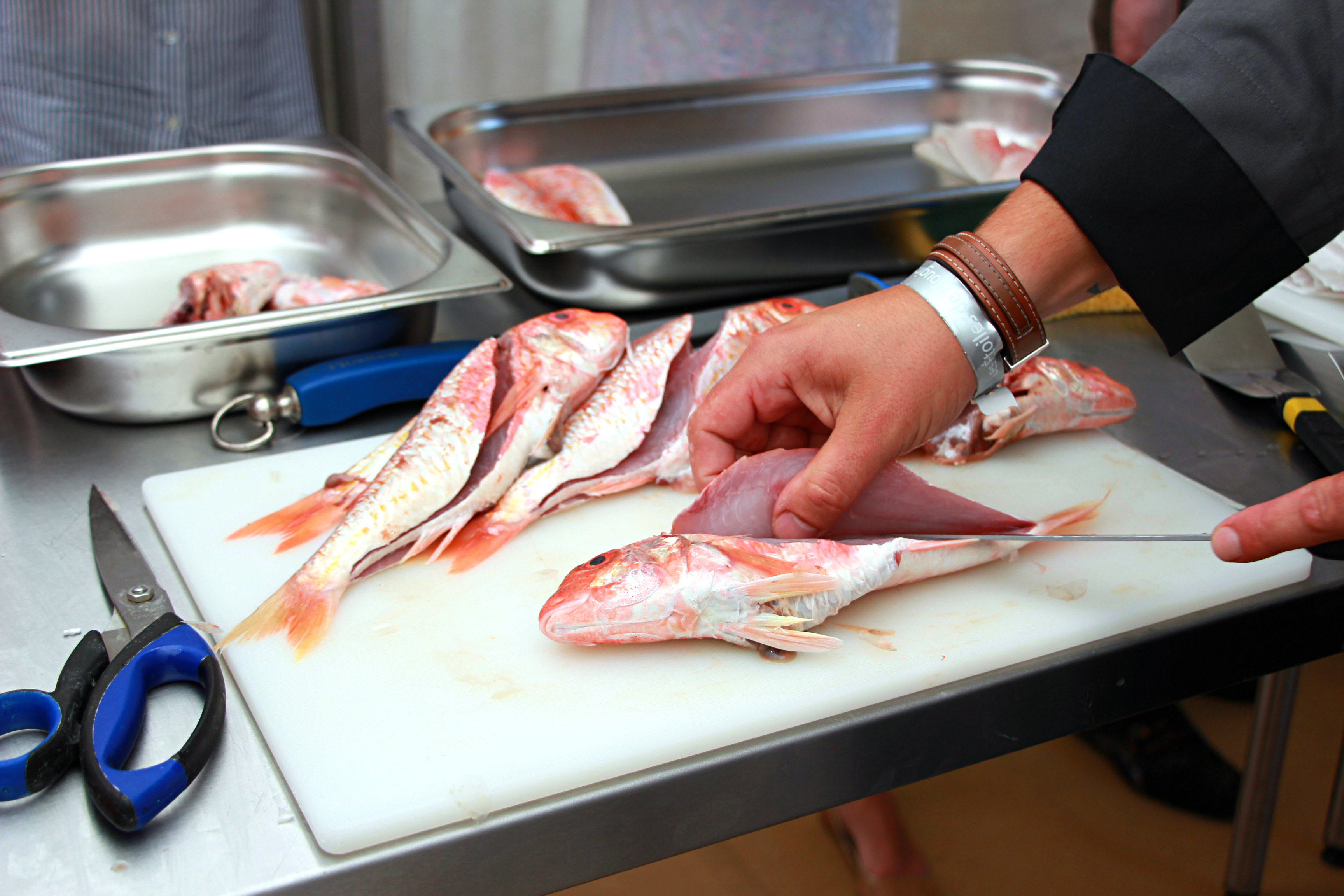 ← Rougets farcis, petits légumes glaçés à l’huile d’olive, risotto et émulsion de jus corsé (Chef CiCOGNOLA – Les étoiles de Mougins)
