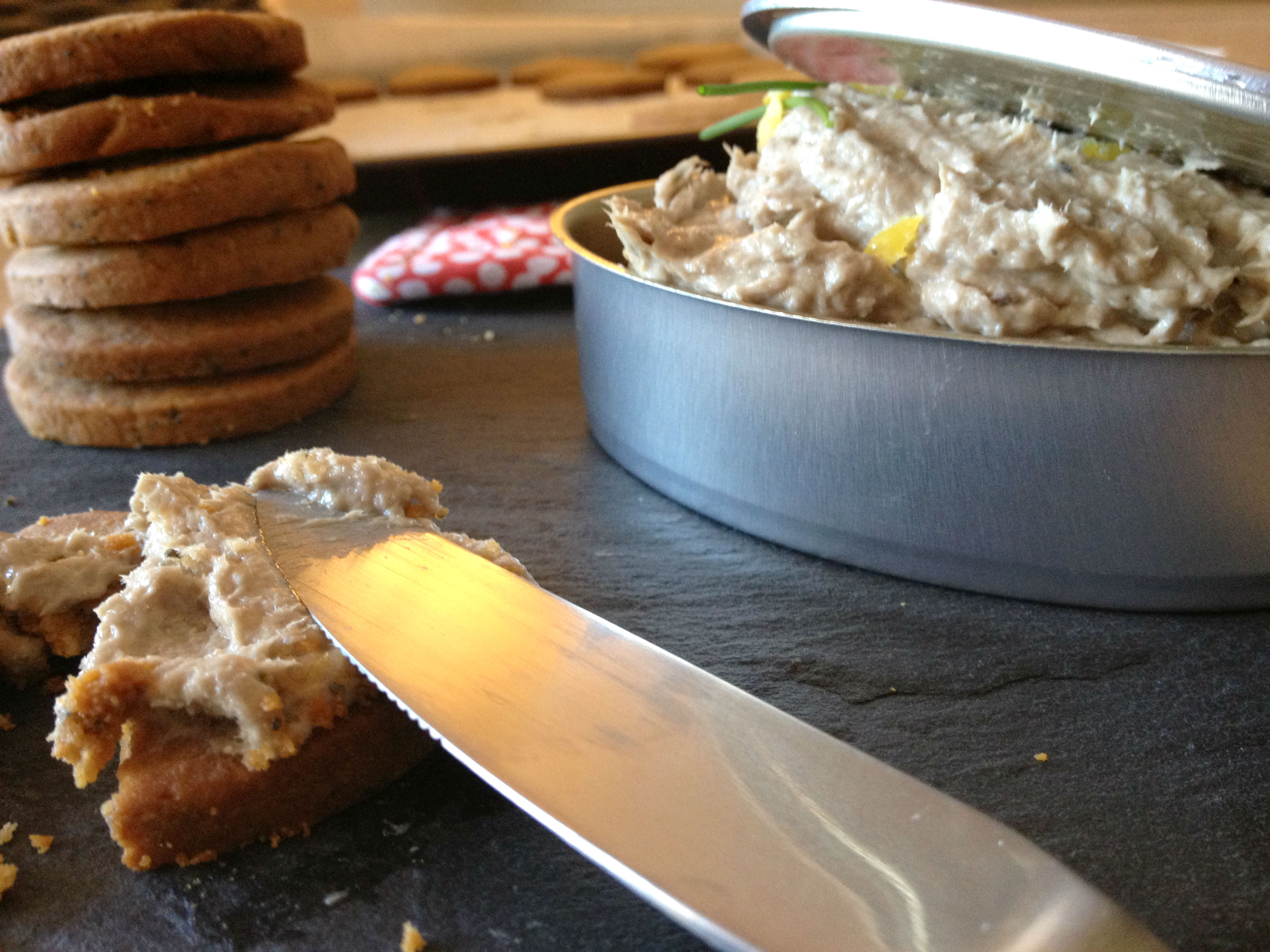 Sablés au parmesan et pavot, rillettes de sardines aux zestes de citron