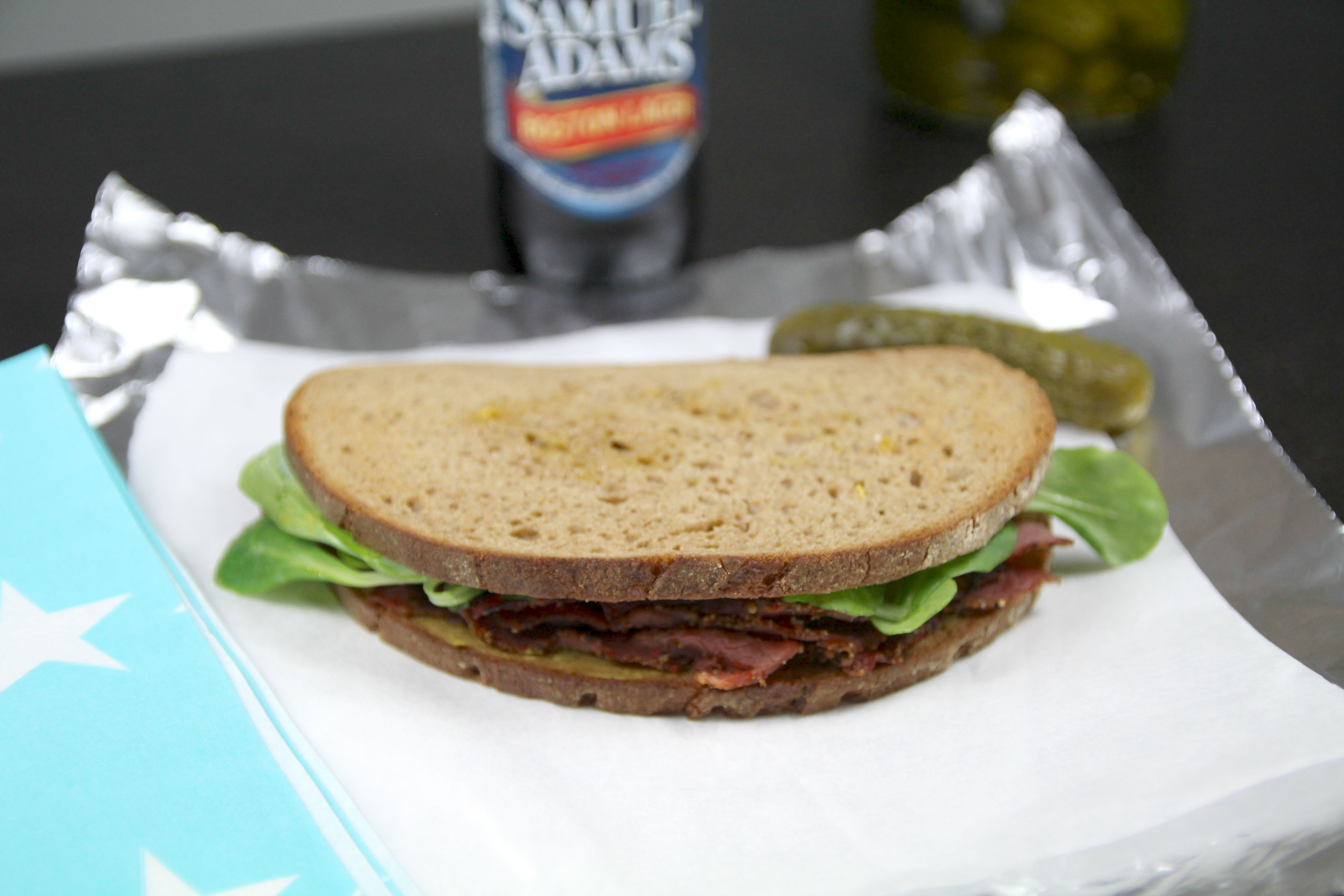 Aujourd’hui on s’attaque à un classique des « delis » New-Yorkais j’ai nommé le Pastrami Sandwich. Je n’ai pas voulu trop toucher à ce classique donc le seul twist que je me suis autorisé c’est d’y ajouter une poignée de cresson pour apporter un peu de fraicheur. Amis végétariens cette recette n’est donc pas faite pour vous car ce n’est que de la viande. Pour ceux qui ne connaissent pas, le pastrami est une préparation à base de viande de bœuf. Le pastrami est préparé avec un bout de poitrine que l’on trempe dans de la saumure puis que l’on fait fumer. Le boeuf est souvent enrobé d’épices diverses et variées comme la coriandre, les graines de piment vert… (chaque maison à ses propres mixtures d’épices). On découpe enfin le boeuf en fines lamelles que l’on utilise notamment en sandwich. Au niveau des proportions j’ai été raisonnable car si vous allez aux US il y a tellement de viande que vous vous demander comment vous allez pouvoir manger ça. Je vous laisse avec la recette de ce délicieux sandwich très réconfortant.