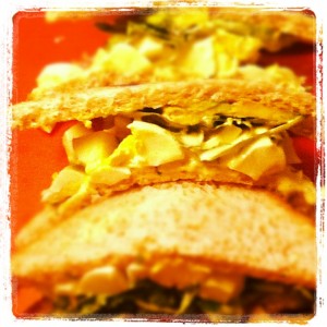 Je vous présente aujourd’hui la recette d’un sandwich garni d’avocat et de la fameuse « egg salad » ou salade d’œufs que l’on retrouve aux USA mais aussi en Angleterre. Il s’agit d’une recette qui fait partie de ce que l’on appelle aux USA la « comfort food », de la nourriture qui fait du bien car elle est facile à préparer et qu’elle rappelle des bons souvenirs. Bien souvent ce ne sont pas des plats « légers » mais on se sent bien quand on les mange tout comme la première gorgée de bière bien fraîche quand on a très soif.