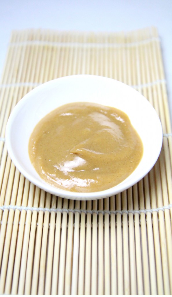 Aujourd’hui une recette de sauce japonaise très sympa que vous pourrez décliner selon vos besoins. Le nom Goma-Ae fait souvent référence à tout type de petites entrées qui utilisent cette sauce (épinard, aubergine…). L’ingrédient phare de cette recette, c’est la crème de sésame blanc*: Le sésame contient beaucoup de calcium et de vitamine E, donc on aurait tort de s’en priver