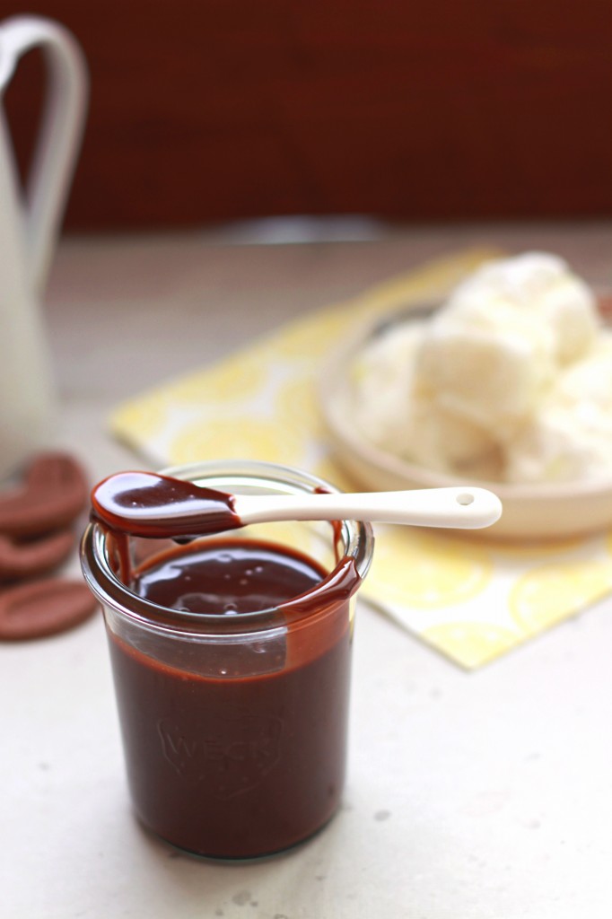 Merci Cécile!! Alors pour être le plus précise possible : cette sauce ne reste pas aussi liquide que celle de Lebovitz. Après comme tu peux voir sur la dernière photo, elle se fige légèrement au contact de la glace, mais ne devient pas pour autant « dure », elle reste quand même « moelleuse »! Bon en tout cas ce que je peux t’assurer c’est qu’elle est totalement délicieuse!! :D