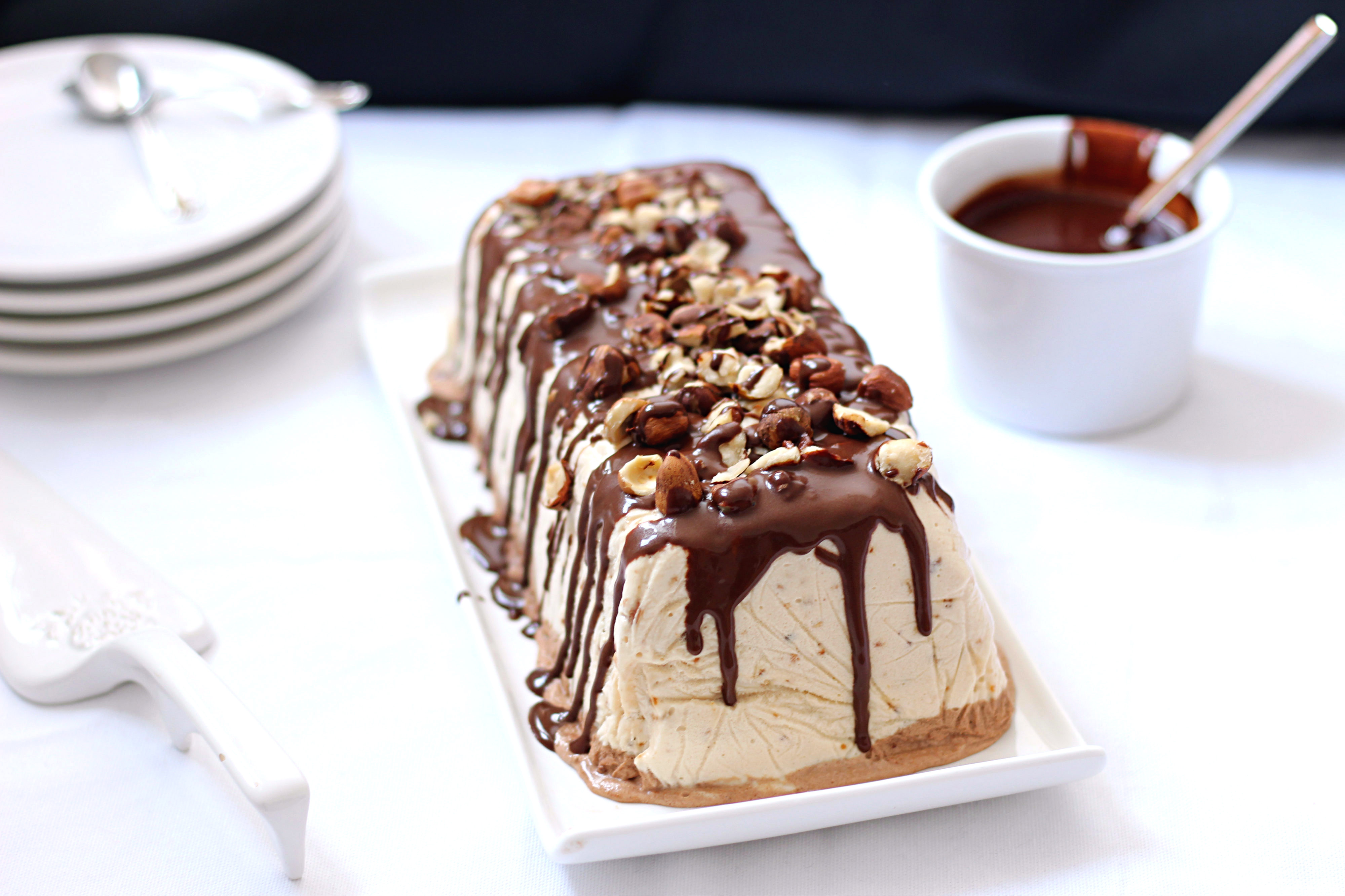 ← Semifreddo au pralin et au chocolat, sauce chocolat noir/gianduja