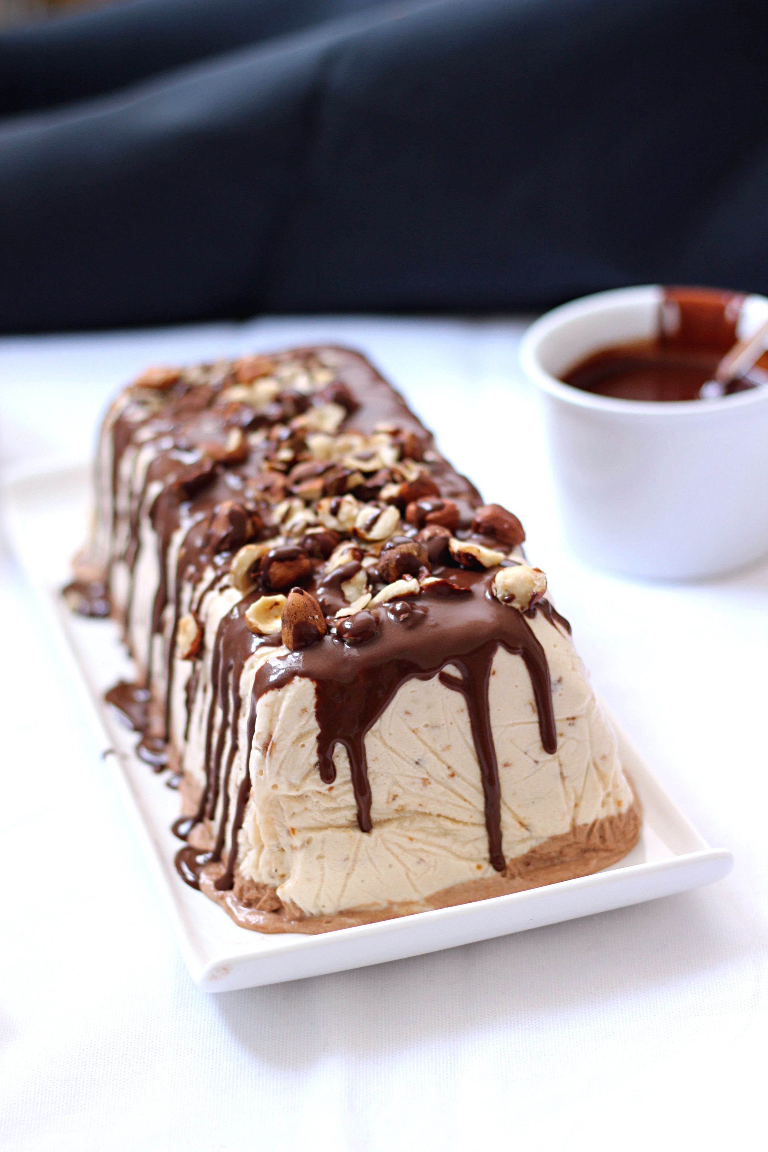 ← Semifreddo au pralin et au chocolat, sauce chocolat noir/gianduja