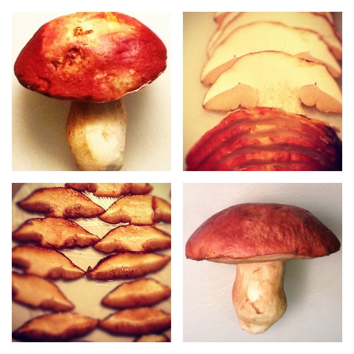 Nettoyer délicatement les têtes des cèpes sous un filet d’eau froide et les éponger avec du papier absorbant. Les détailler ensuite en lamelles de 5 mm d’épaisseur.