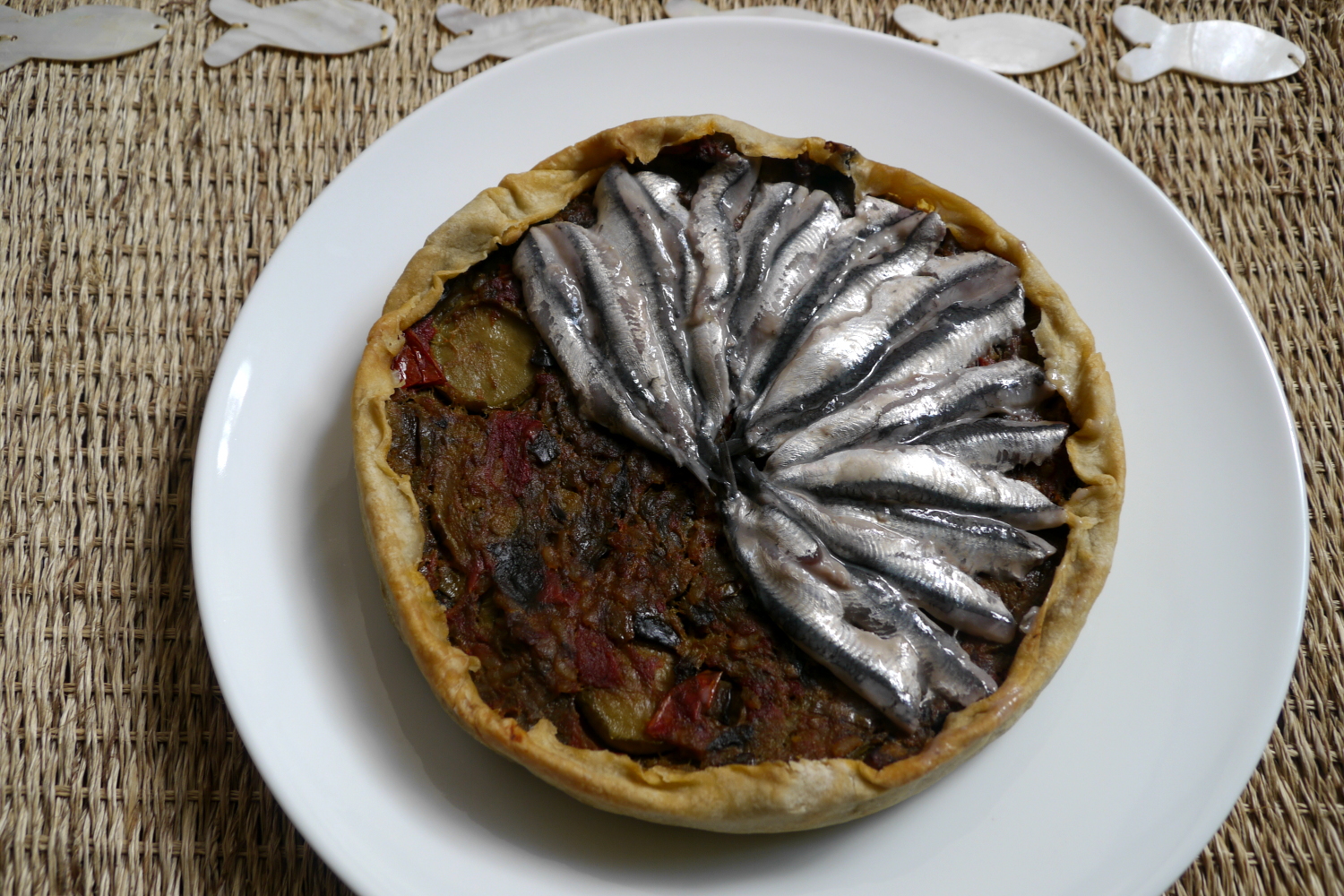 Cette recette est inspirée de la tarte pan-bagnat à l’anchois frais issue d’un livre du truculent Jacques Maximin que celui-ci consacre aux tartes. Ce chef sans concession qui n’a pas sa langue dans sa poche possède un talent fou et tout simplement remarquable. J’ai eu la chance de manger dans son restaurant le bistrot de la marine à Cagnes-sur-Mer. J’en garde un souvenir inoubliable (surtout des anchois servis en entrée!)