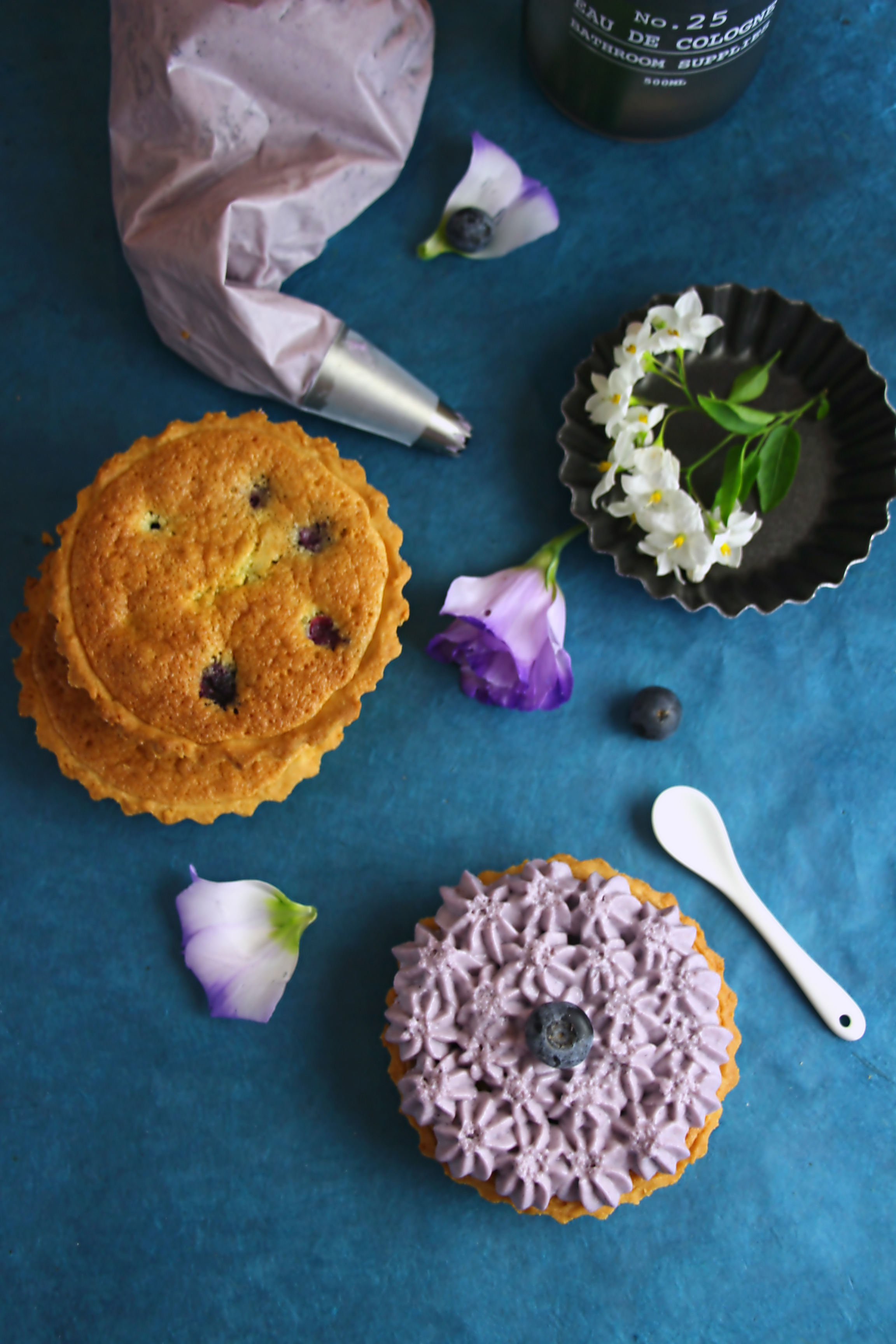 Tartelettes amandine aux myrtilles, chantilly mascarpone myrtille