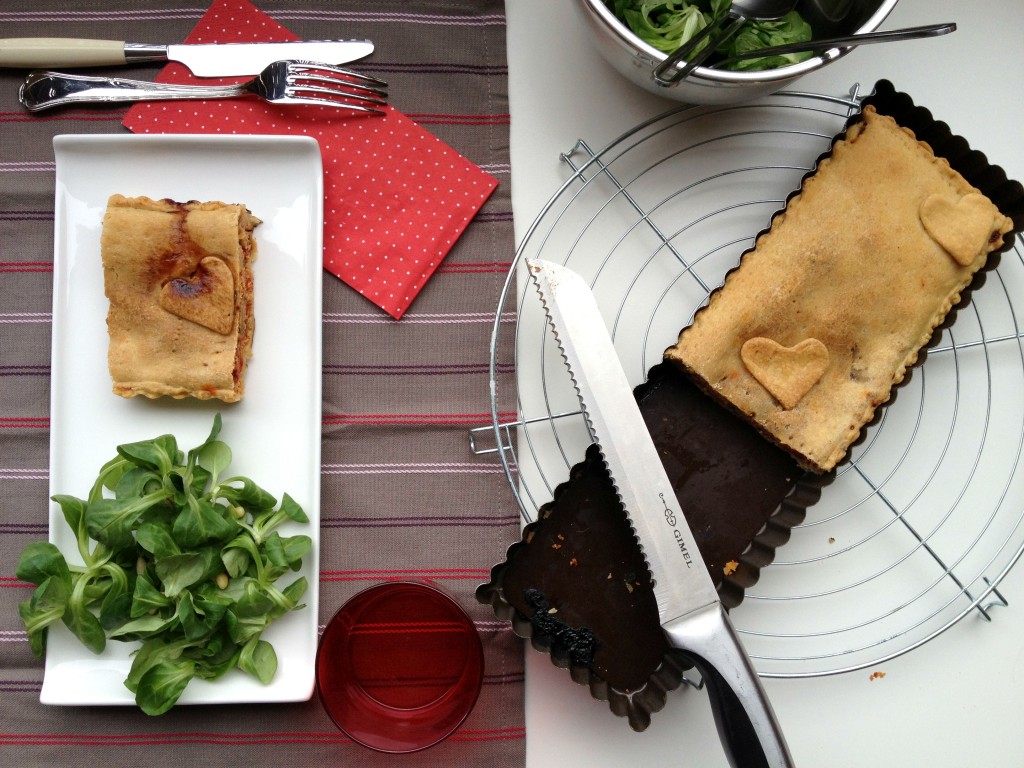 En ce qui concerne la pâte, je réalise toujours la même, à base d’huile d’olive. J’adore sa texture souple et qui s’effrite légèrement sous le couteau. Un régal! Et en plus elle se prépare si rapidement!
